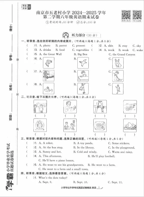 2026春小学英语《学霸小学毕业升学考试真题试卷精选34套》,小升初英语江苏专用,电子版pdf可打印(文末附获取方式)包含答案