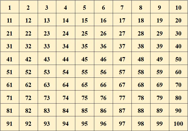 3、百数表