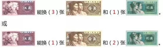 【分析:学生容易将此类题目与“将5角分别对换成1角和2角”相混淆,没有理解题目是将一张5角同时换成1角和2角,也就是几张1角和几张2角加起来要等于5角这个意思。
