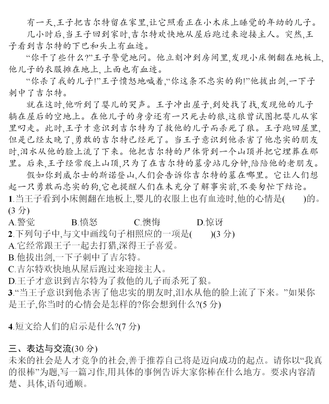 四、阅读检测台(18分)