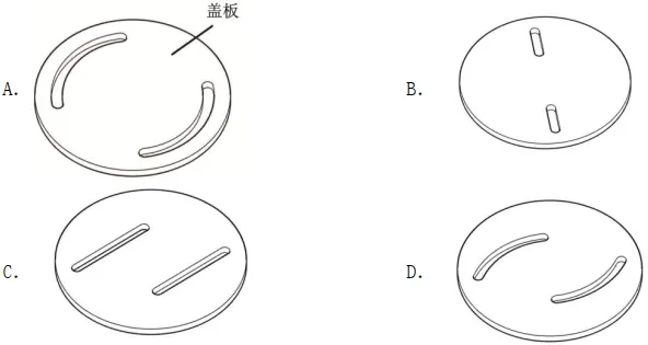 18.小明设计了如图所示的旋转开合机构,该机构由框架、开合叶片和盖板组成,要求盖板旋转90° ,叶片刚好打开或闭合一次,下列四种盖板的设计方案中,合理的是