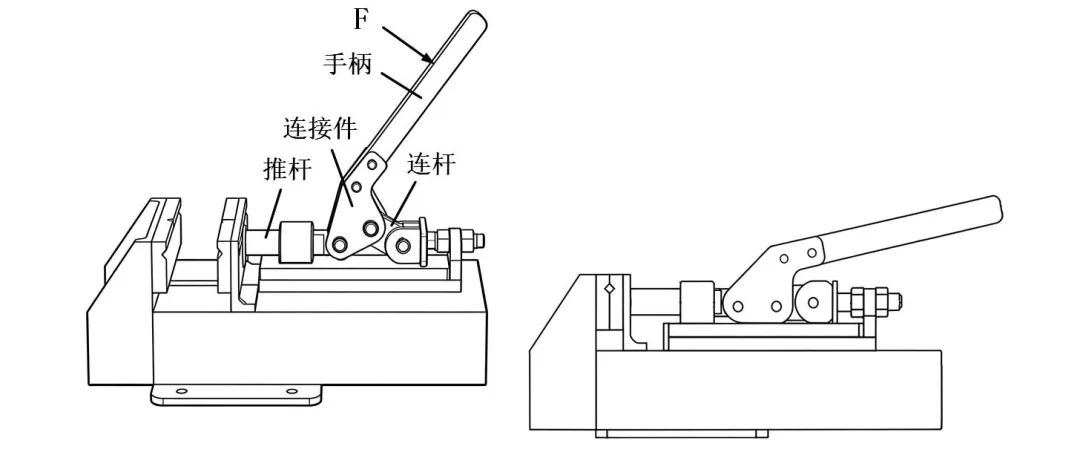 20.如图a所示的方管夹持机构,在力F的作用下,手柄通过连接件、连杆,带动推杆前推,将方管夹紧,完全夹紧时如图b所示。在图a状态下,下列对构件主要受力形式分析中正确的是
