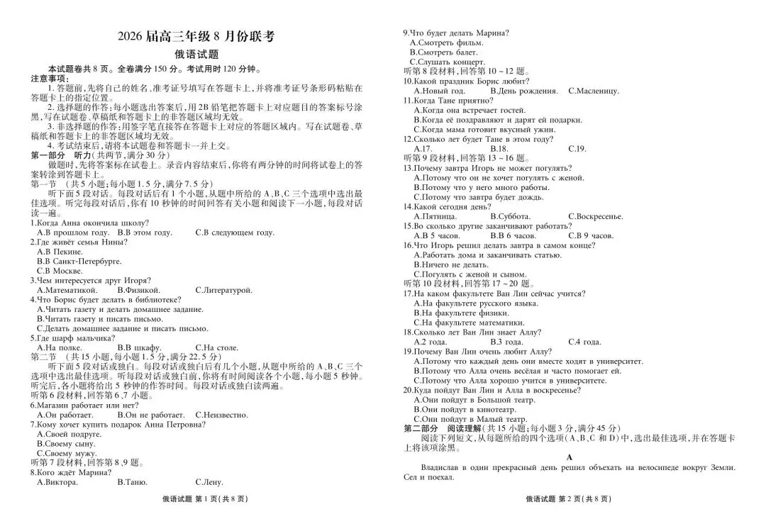 新版教材七年级上册俄语课件。分课时,带听力音频,需要咨询。我用夸克网盘分享了「高三俄语正文(2026届高三8月份联考)」,点击链接即可保存。打开「夸克APP」,无需下载在线播放视频,畅享原画5倍速,支持电视投屏。