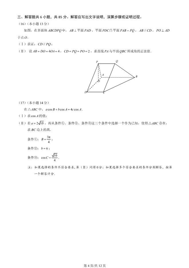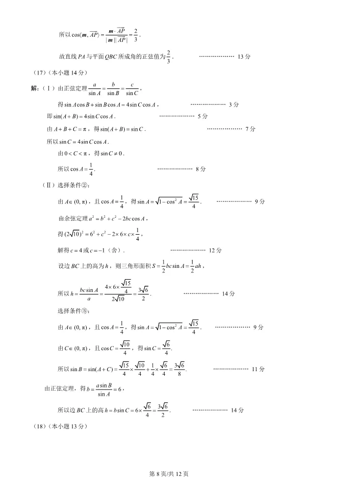 2025北京西城高三一模数学试卷(有答案) ;word版本可下载使用;