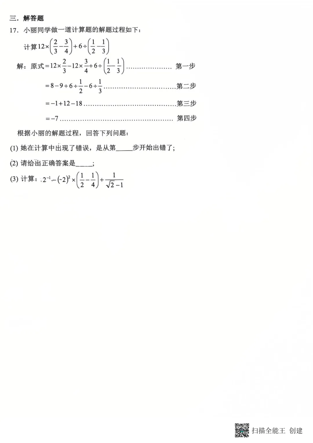 七下历史月考试卷免费