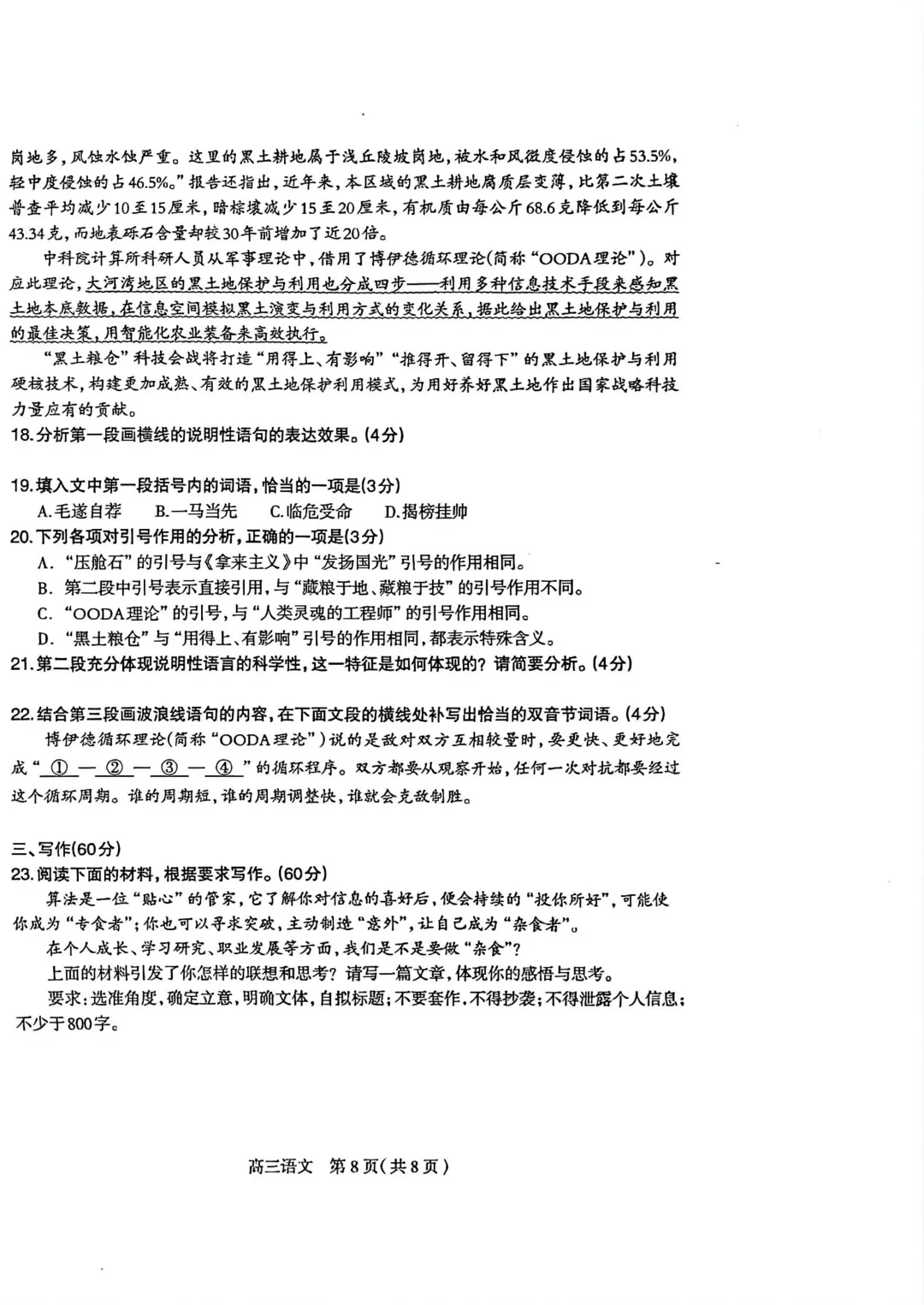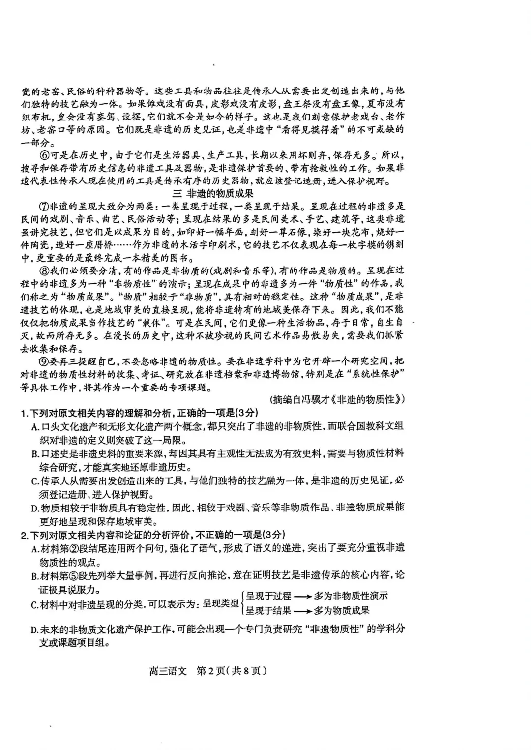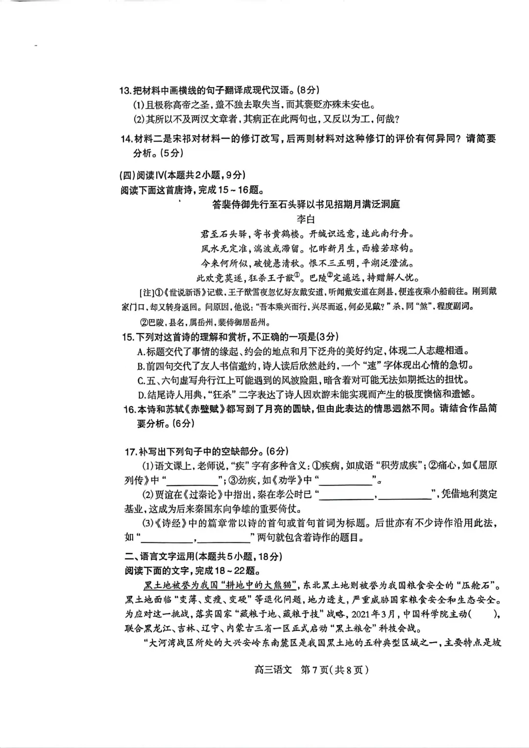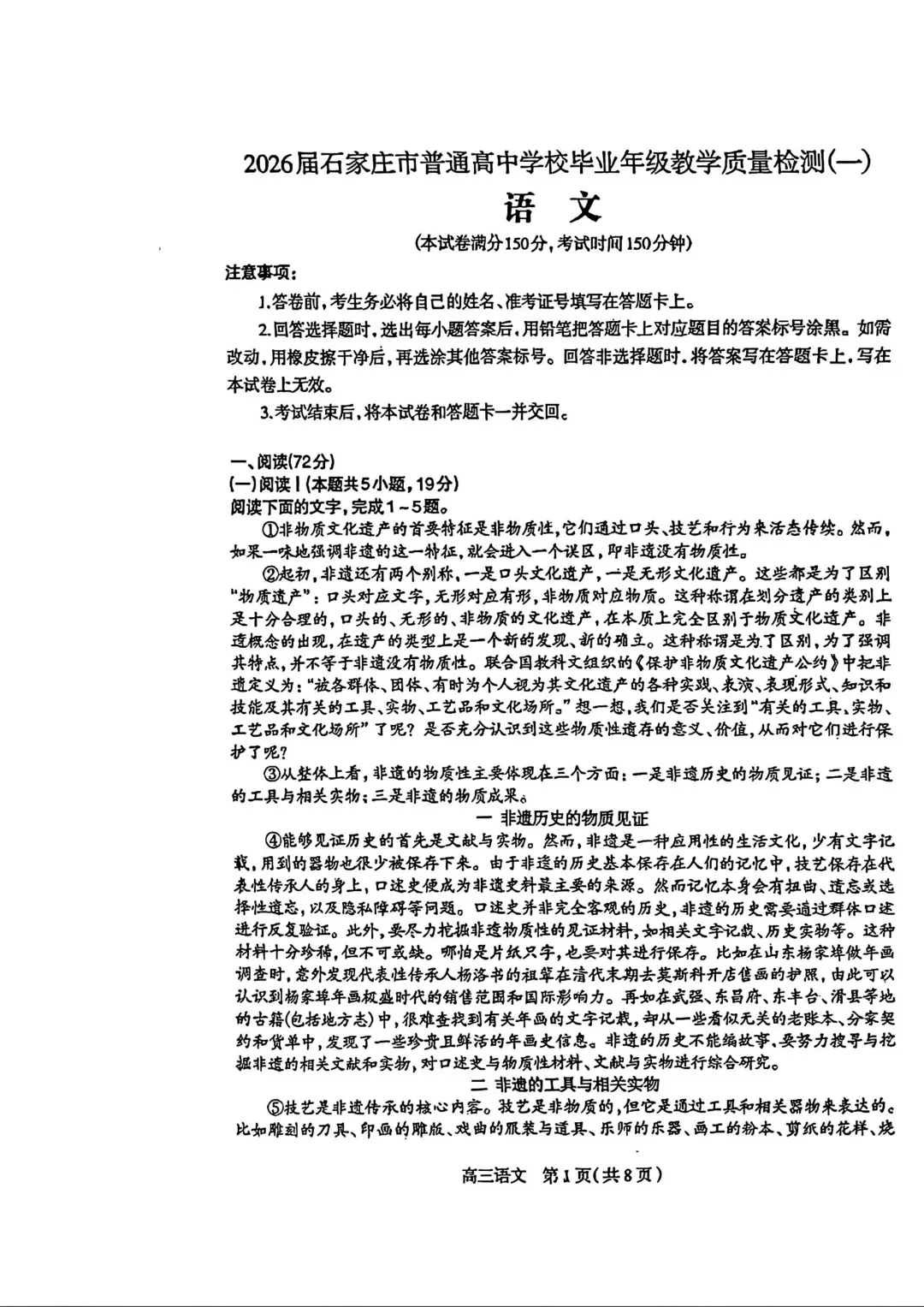 石家庄市一模语文试卷