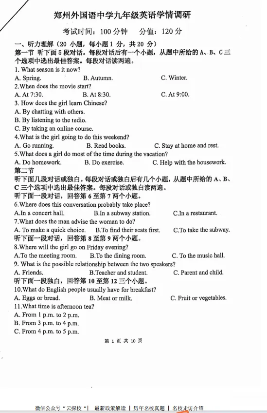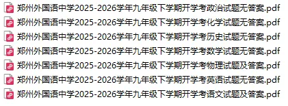 >2026年郑州外国语中学九下3月月考试卷及部分答案(7科)