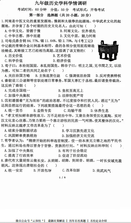 [名校之约]2026河南省中招考试模拟试卷(一)1