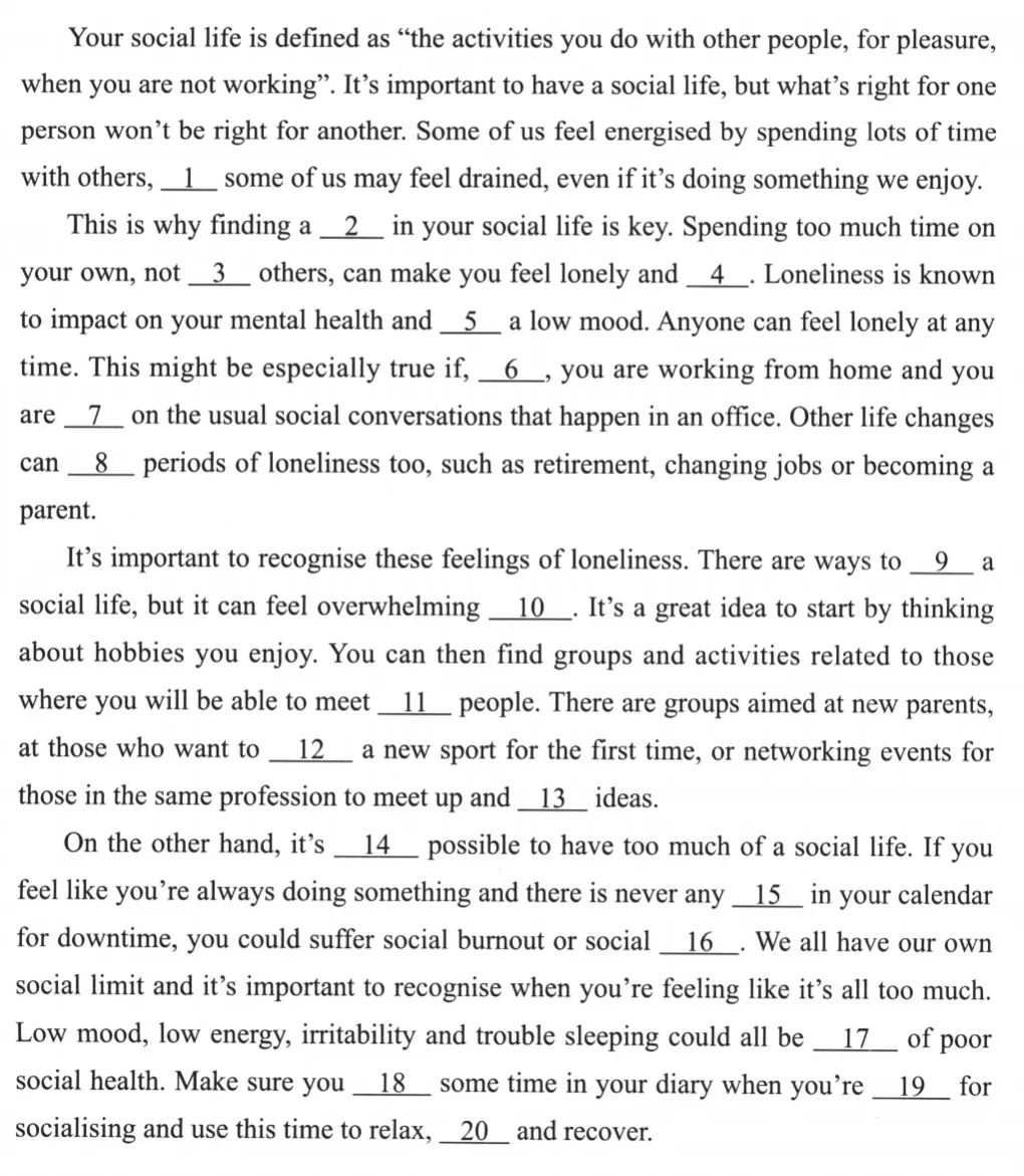 注:overwhelm 由over- + whelm 构成。over- 表示 “过度、在… 之上、压倒”,whelm 本义是 “淹没、覆盖”,合在一起字面是 “淹没、压垮”,引申为 “(情感、任务、压力)大到让人无法承受”。overwhelming 是其分词作形容词,表示 “令人难以招架的、压倒性的、让人不知所措的”。文中指重建社交生活这件事,一开始会让人觉得压力很大、不知从何下手。