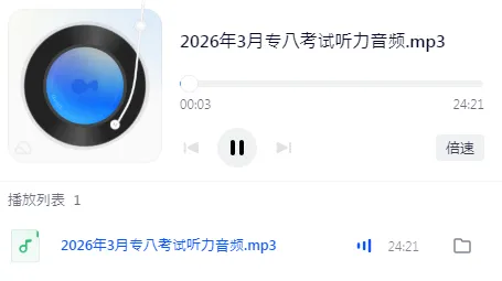 【2026年3月专八考试听力音频.mp3】点击链接或打开「夸克APP」即可获取。