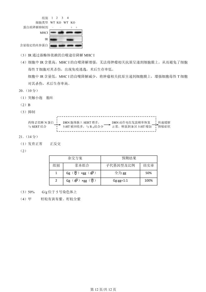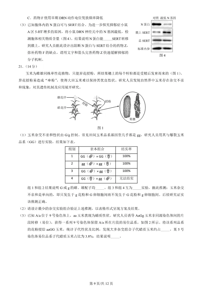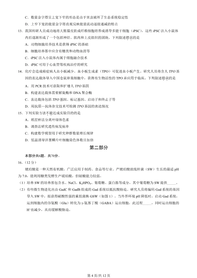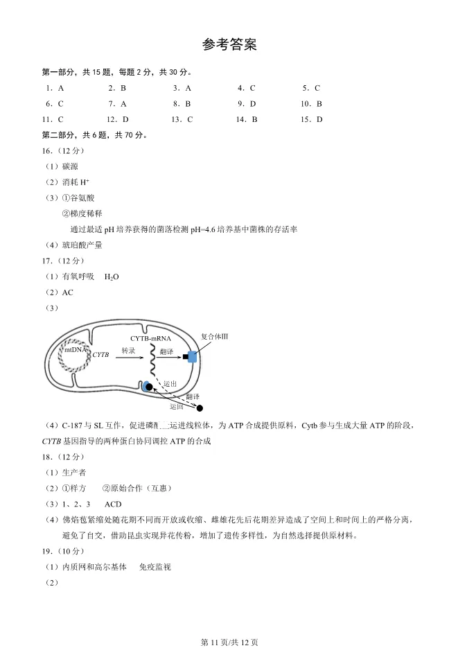 2025北京西城高三一模生物试卷(有答案) ;word版本可下载使用;