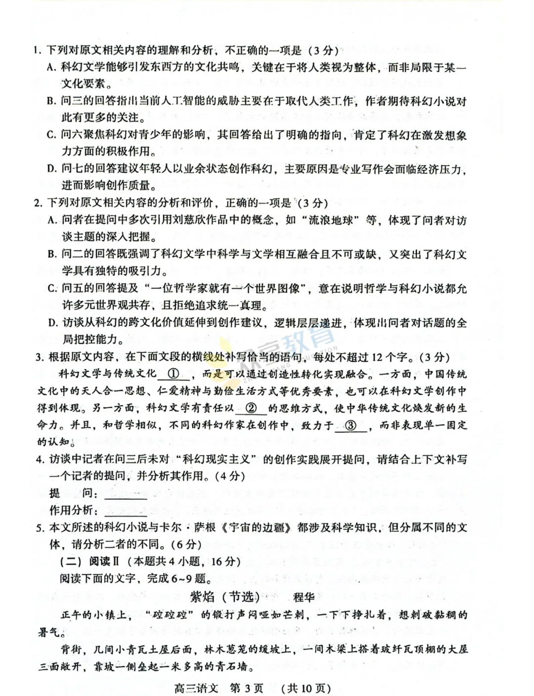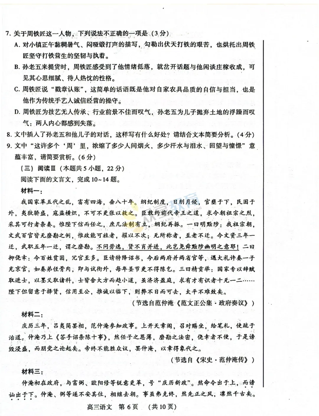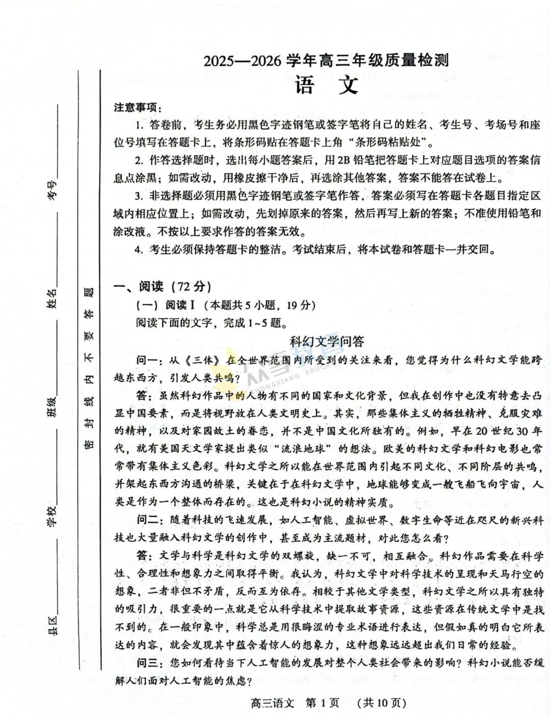2025-2026学年高三第三次质量检测试卷(语文)