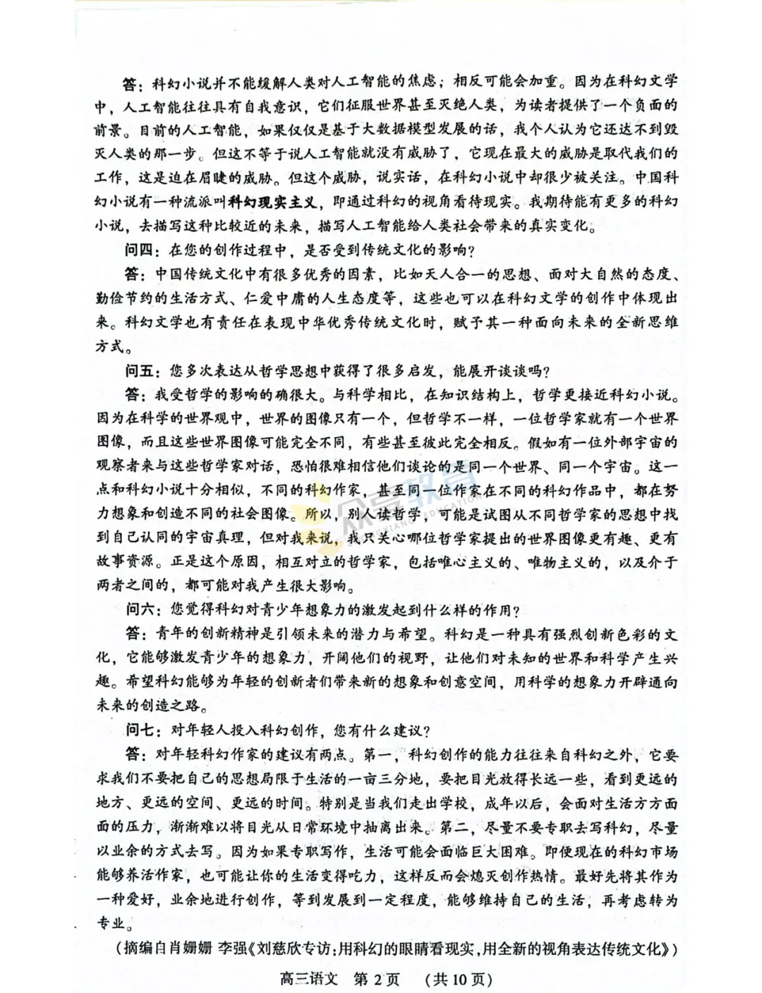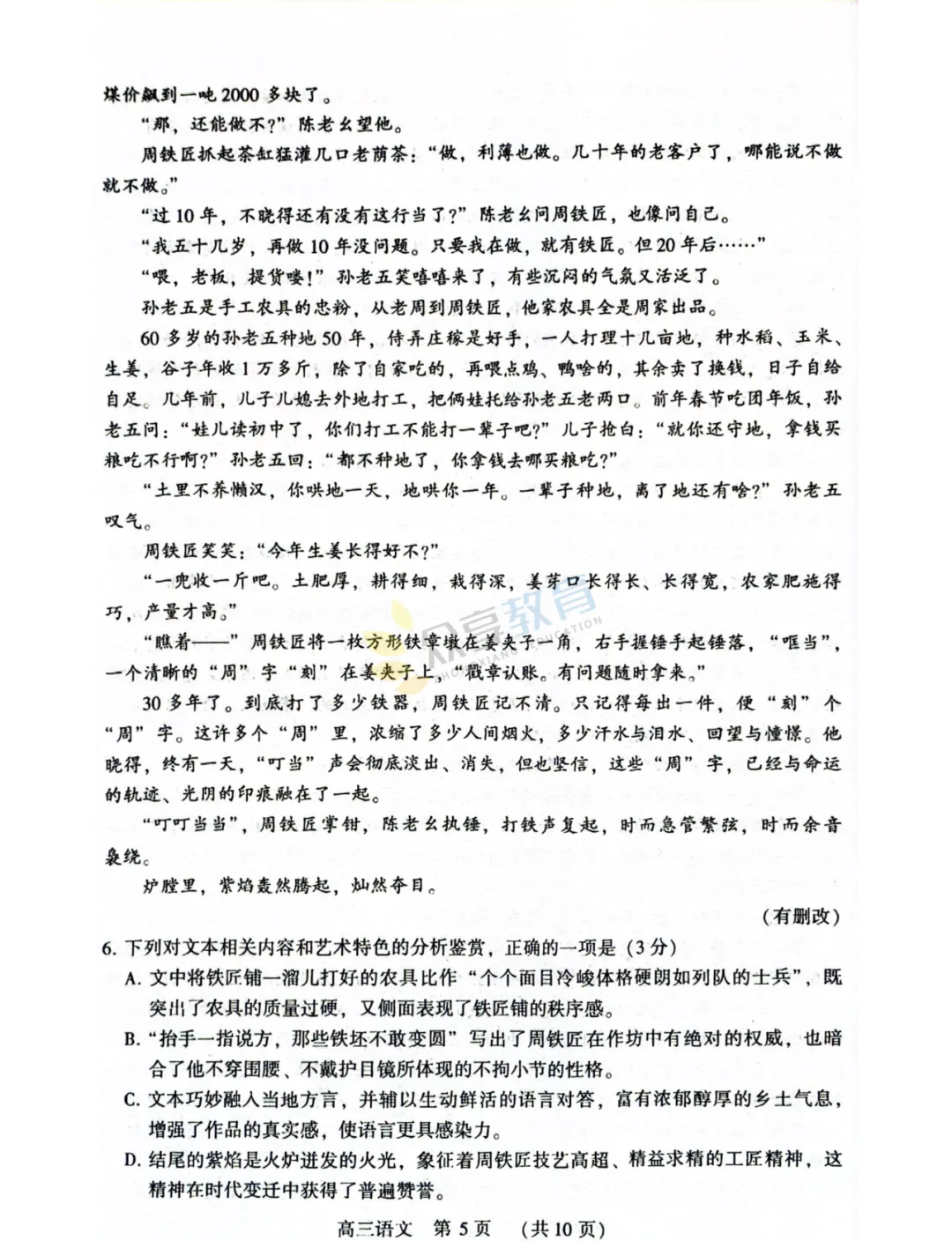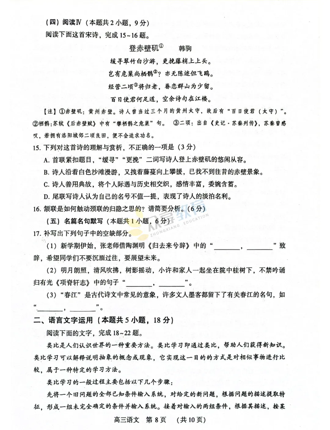 2025-2026学年高三第三次质量检测试卷(语文)