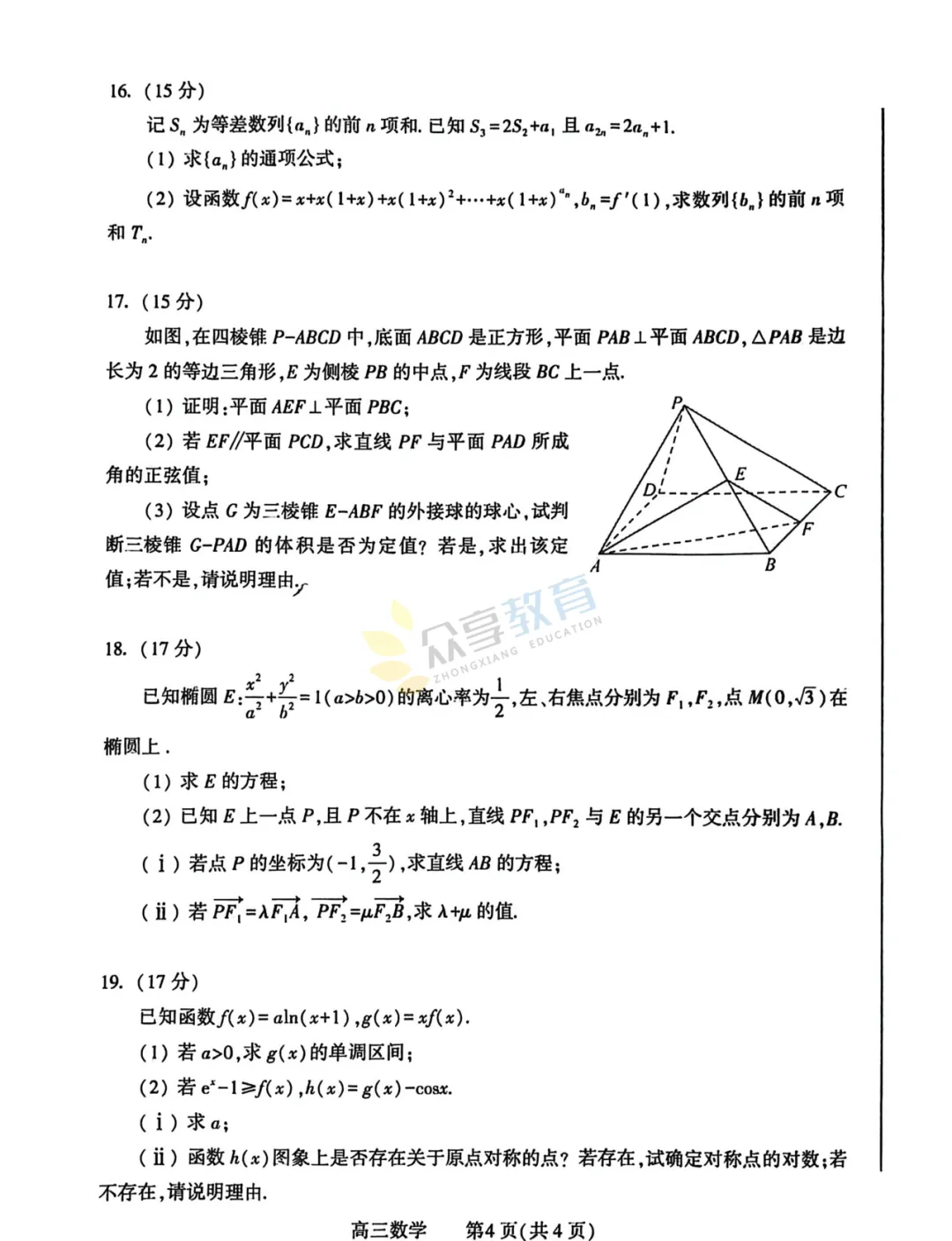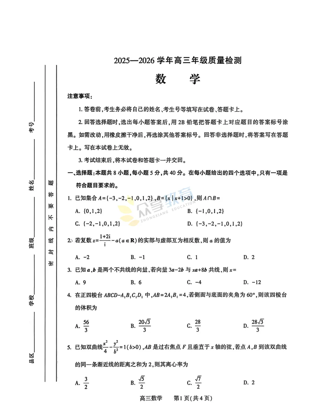 2025-2026学年高三第三次质量检测试卷(数学)