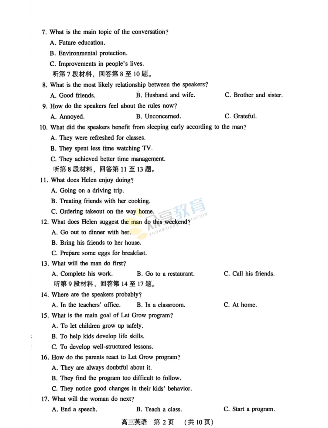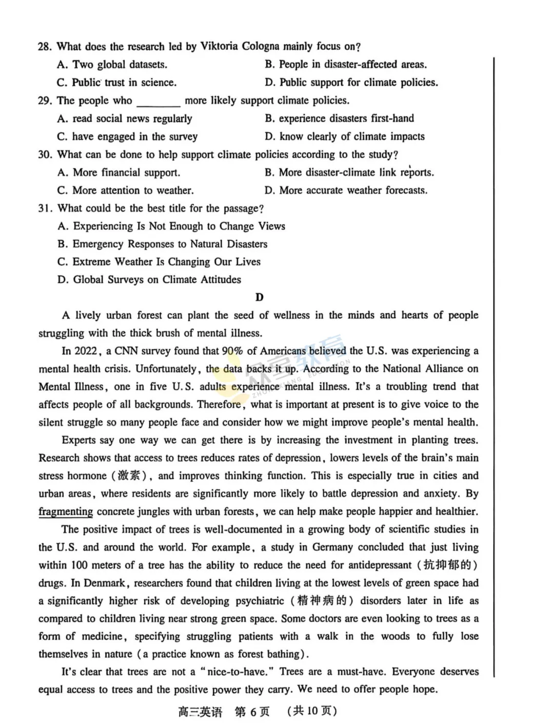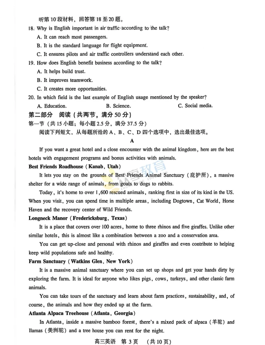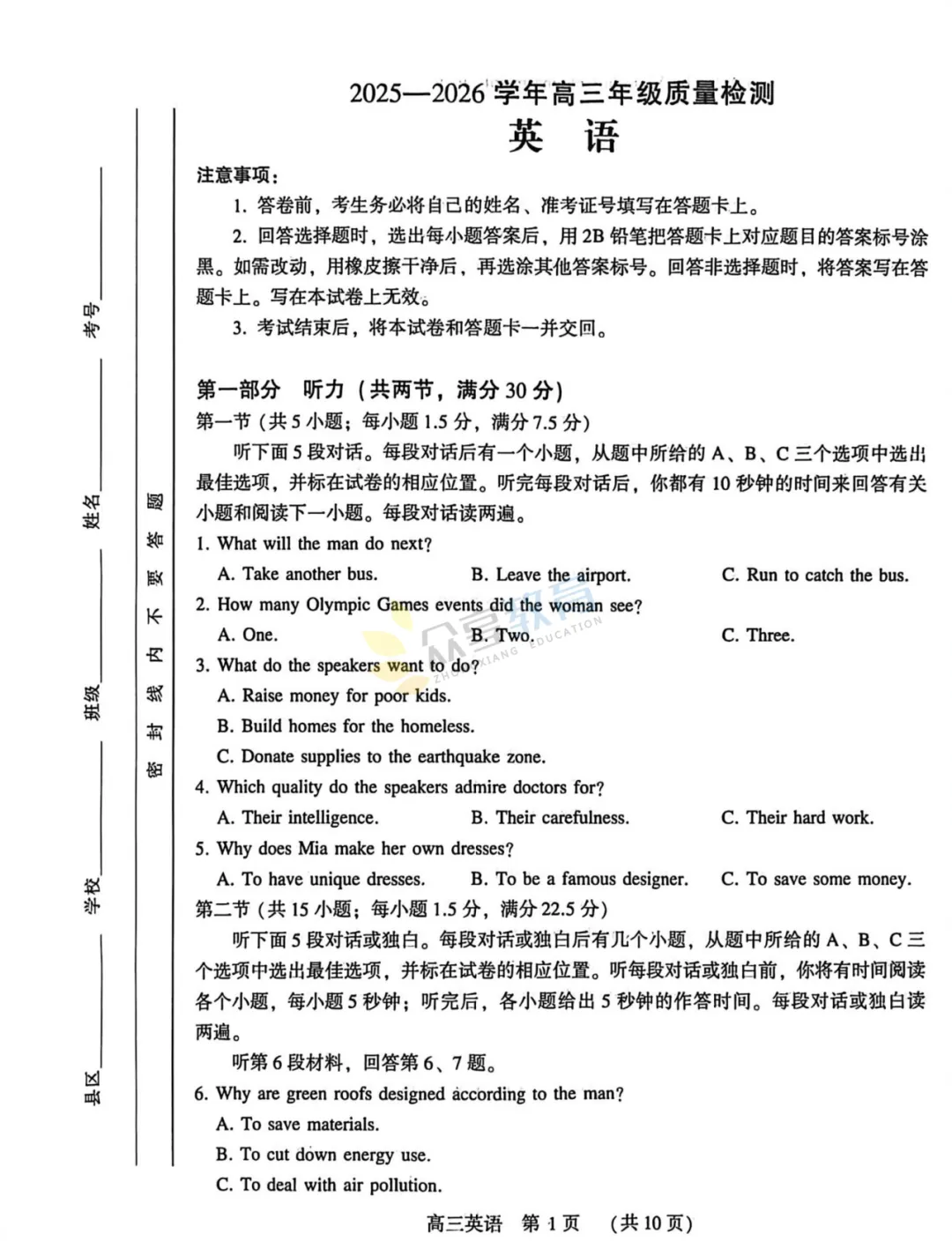 2025-2026学年高三第三次质量检测试卷(英语)