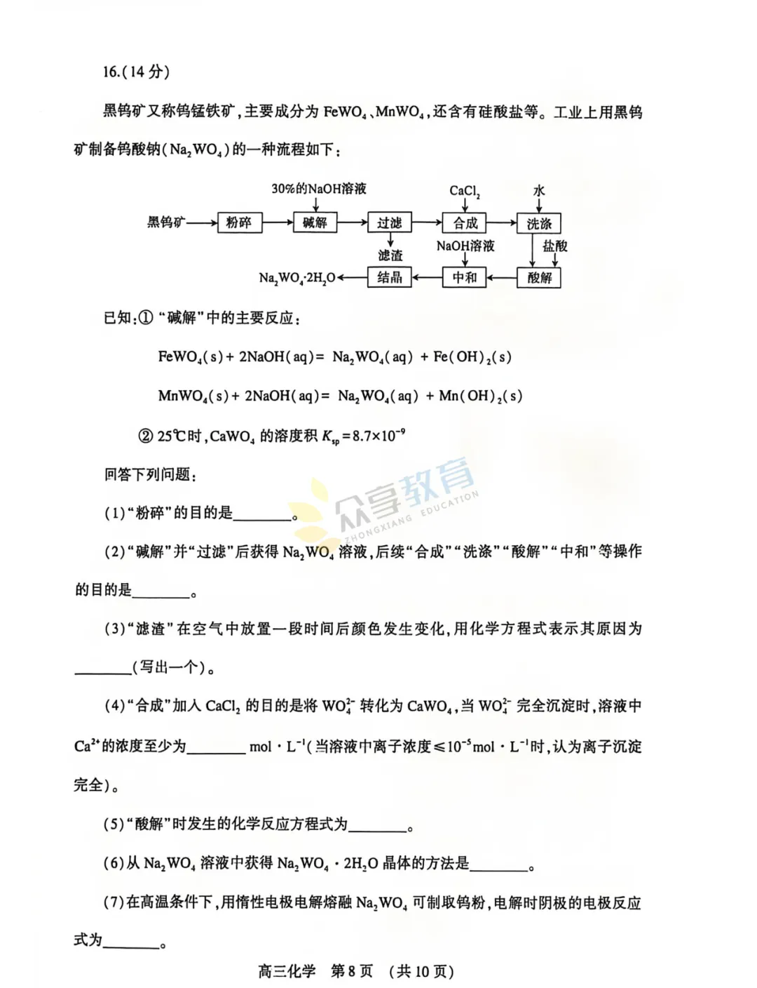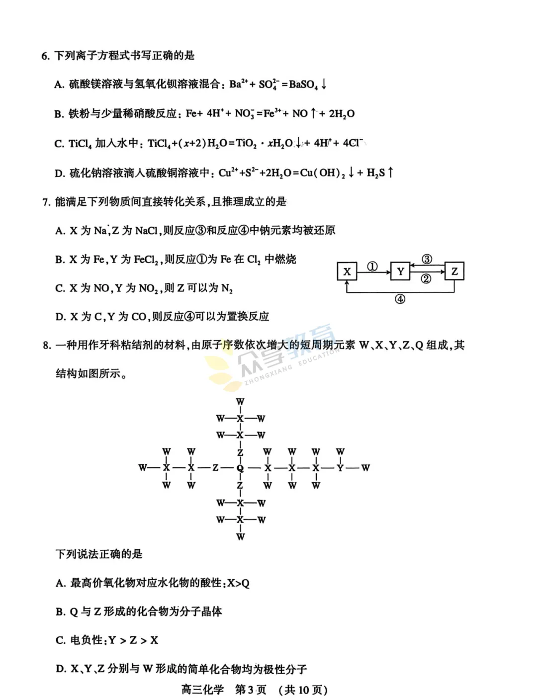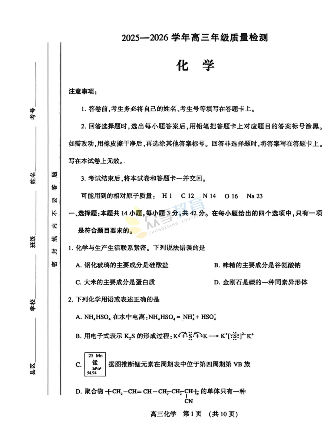 2025-2026学年高三第三次质量检测试卷(化学)