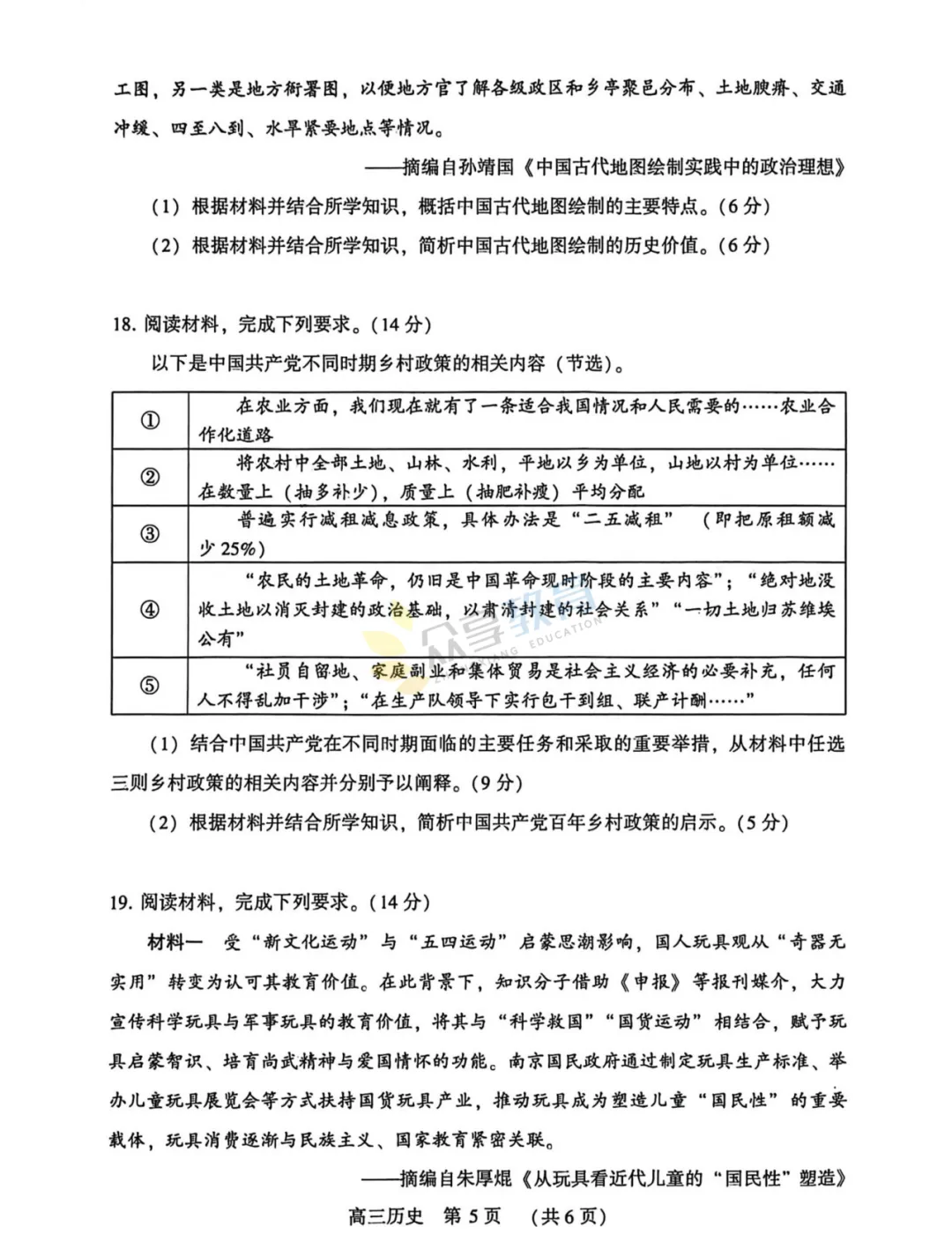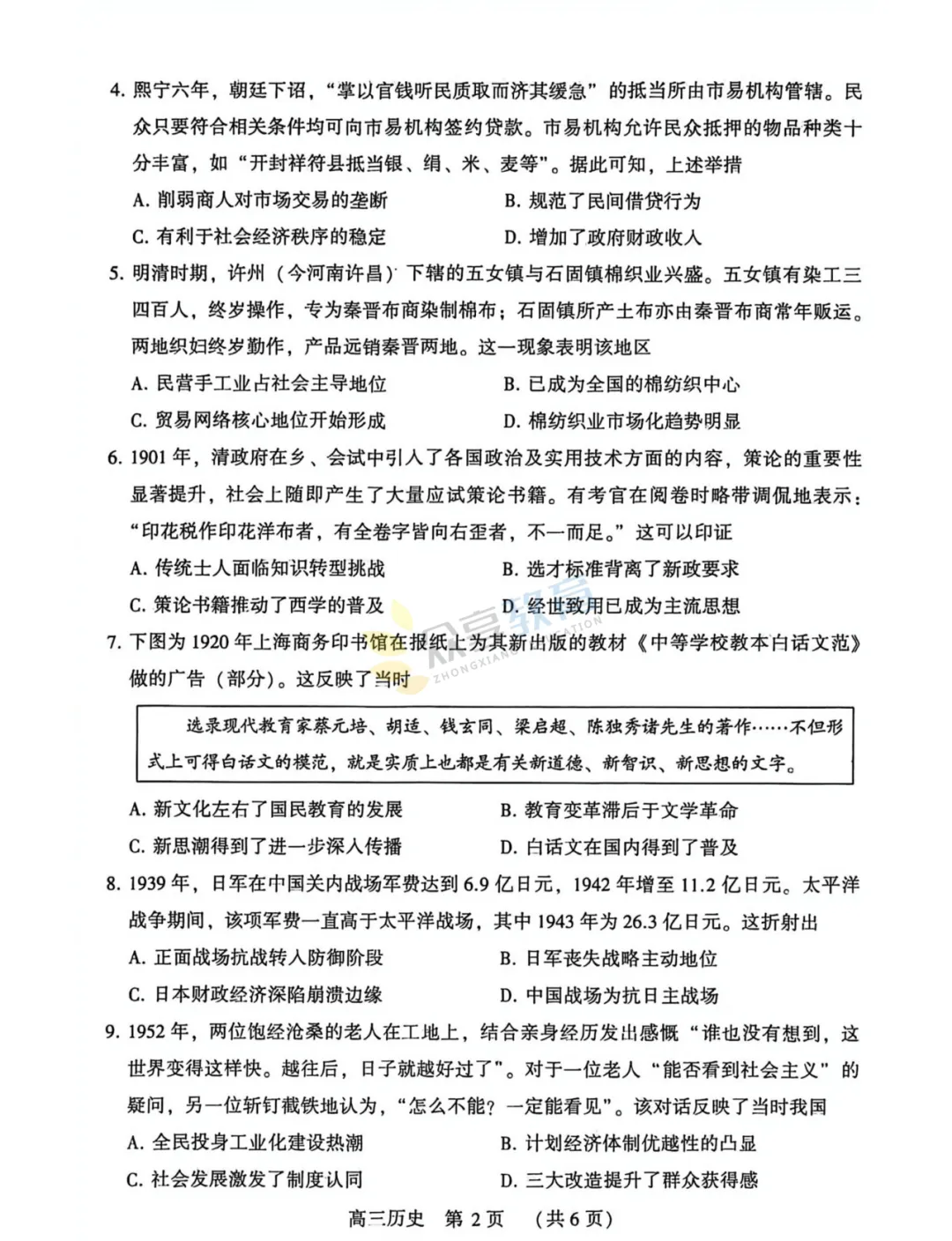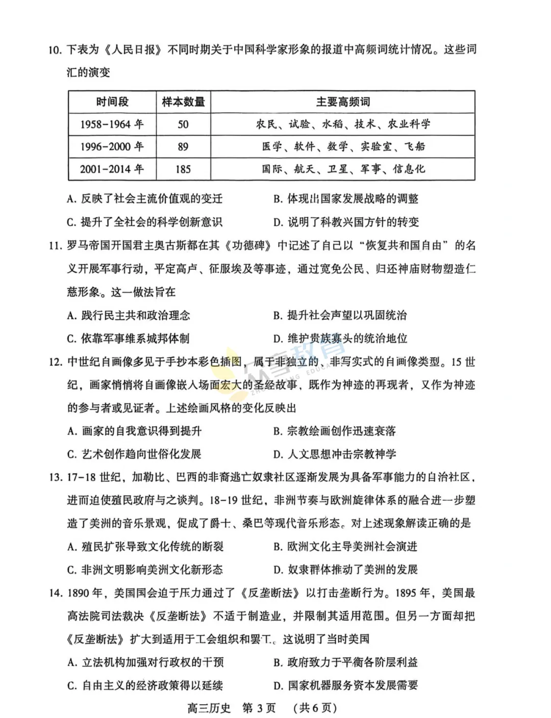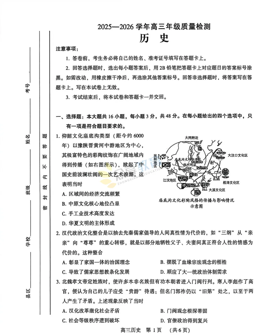2025-2026学年高三第三次质量检测试卷(历史)