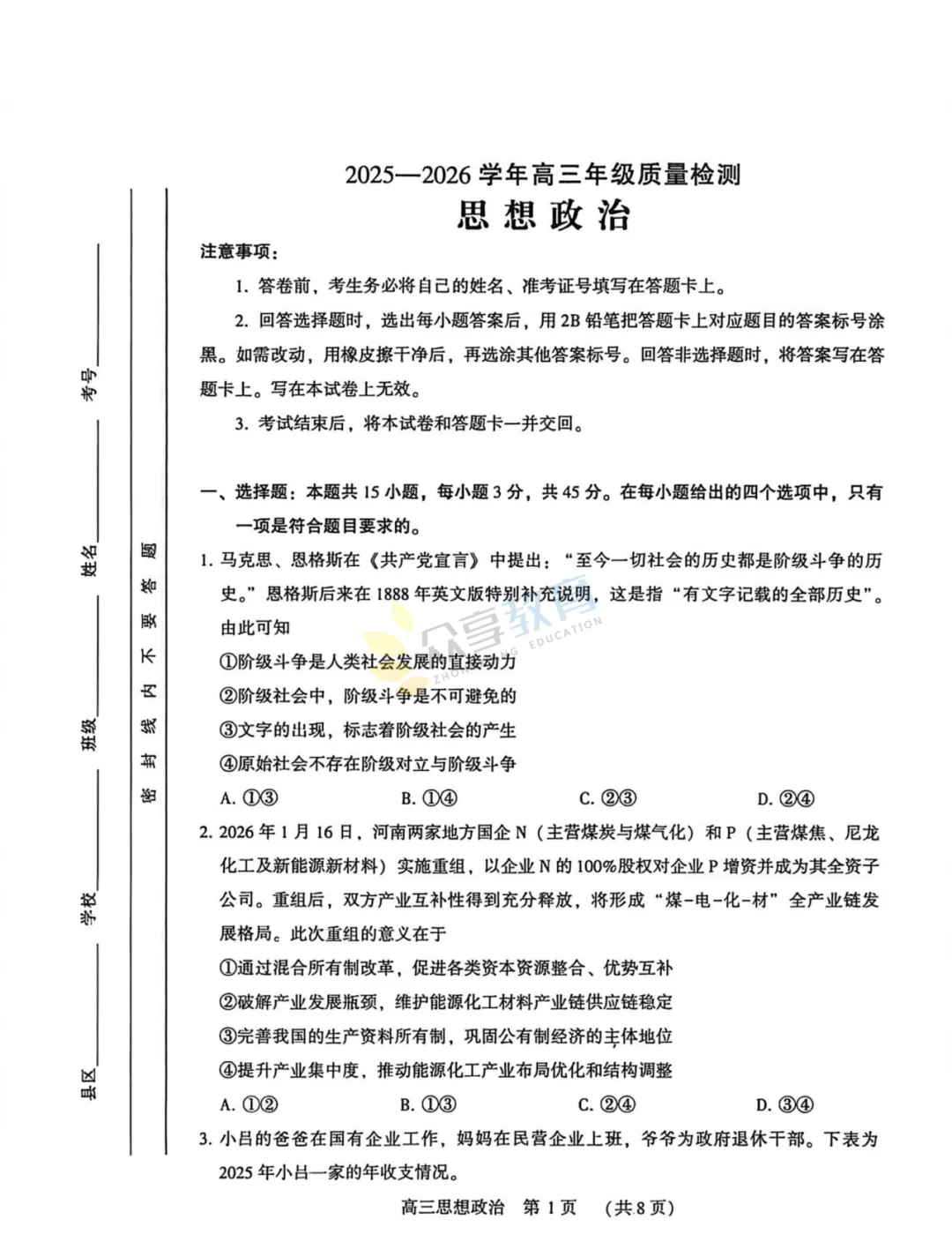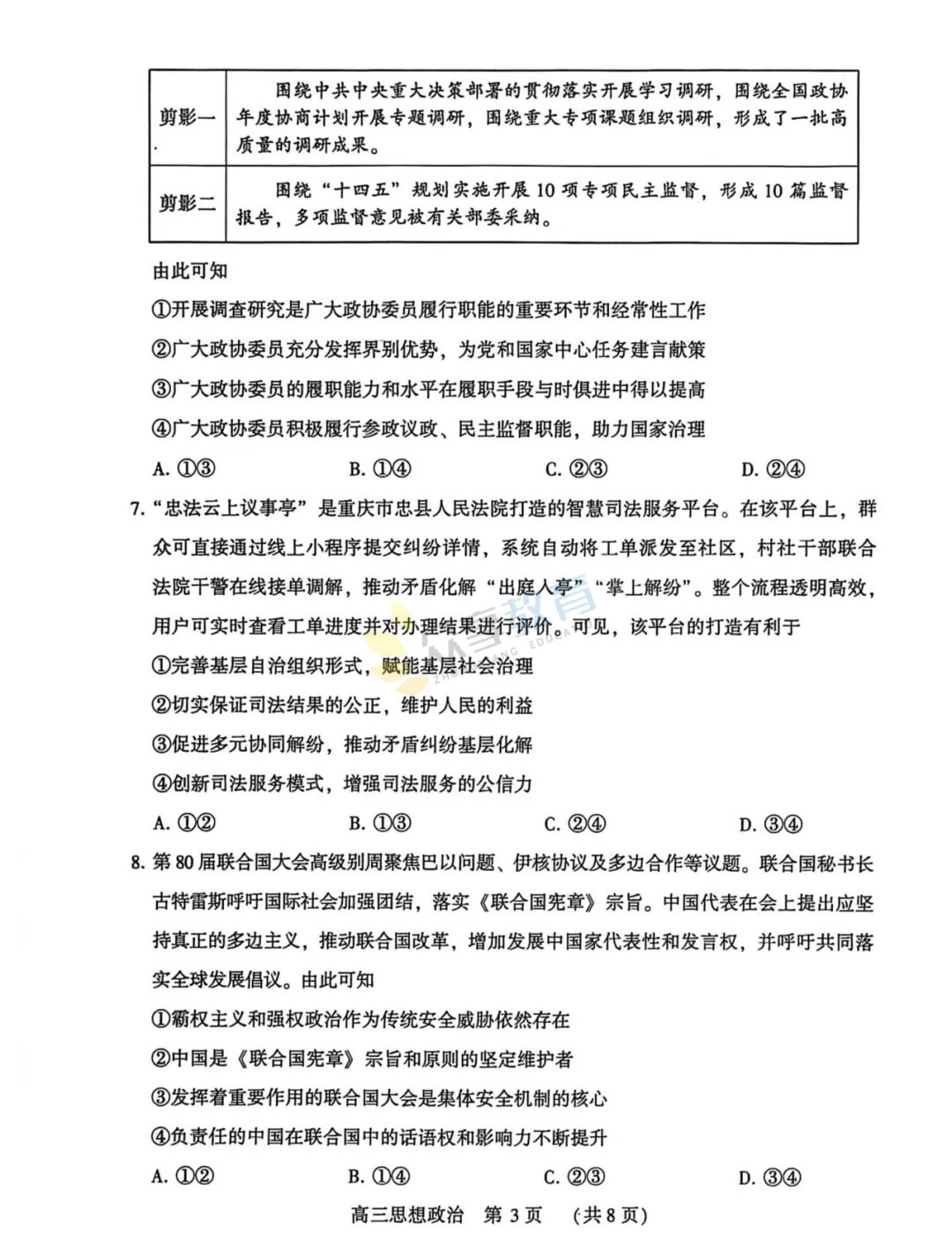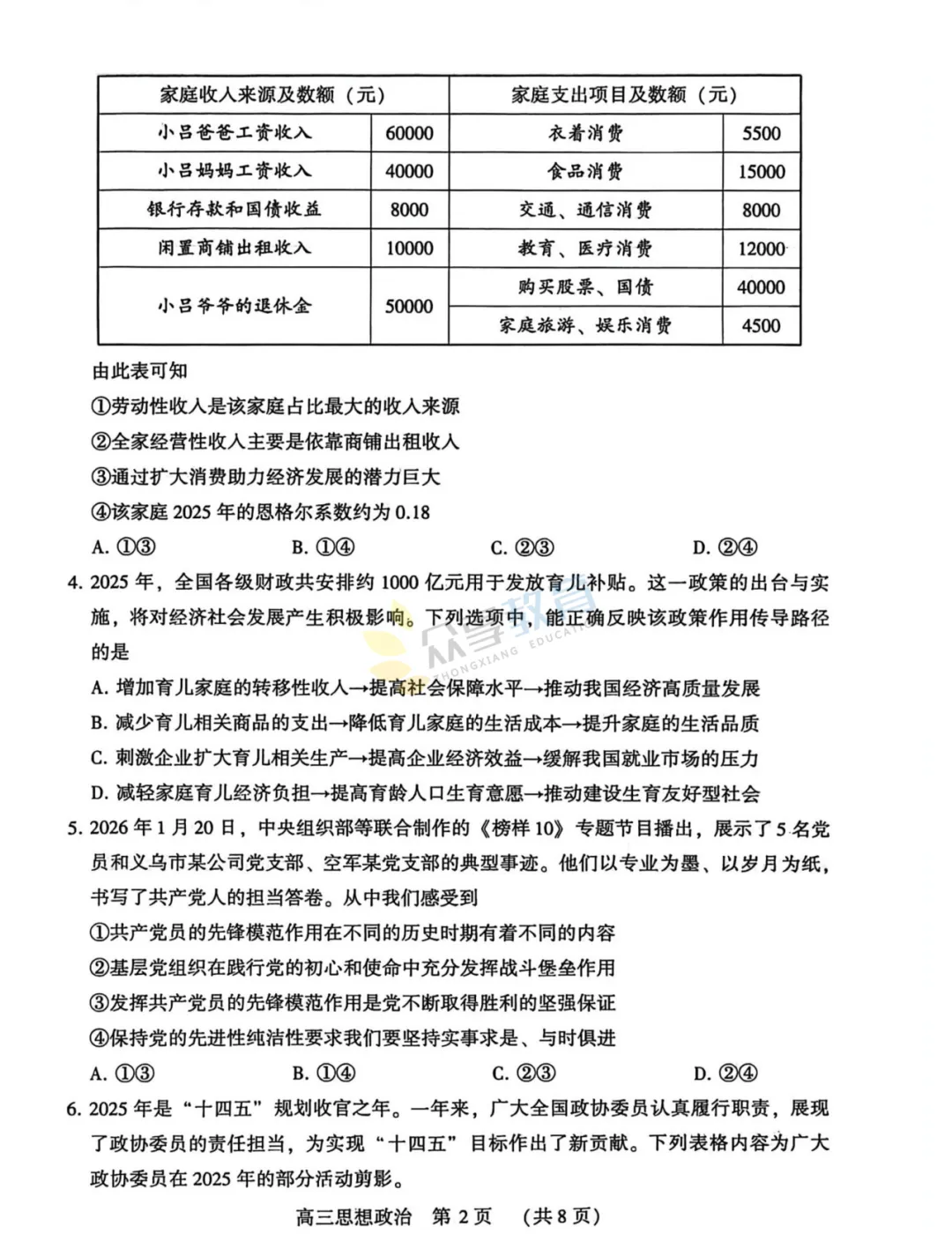 2025-2026学年高三第三次质量检测试卷(政治)