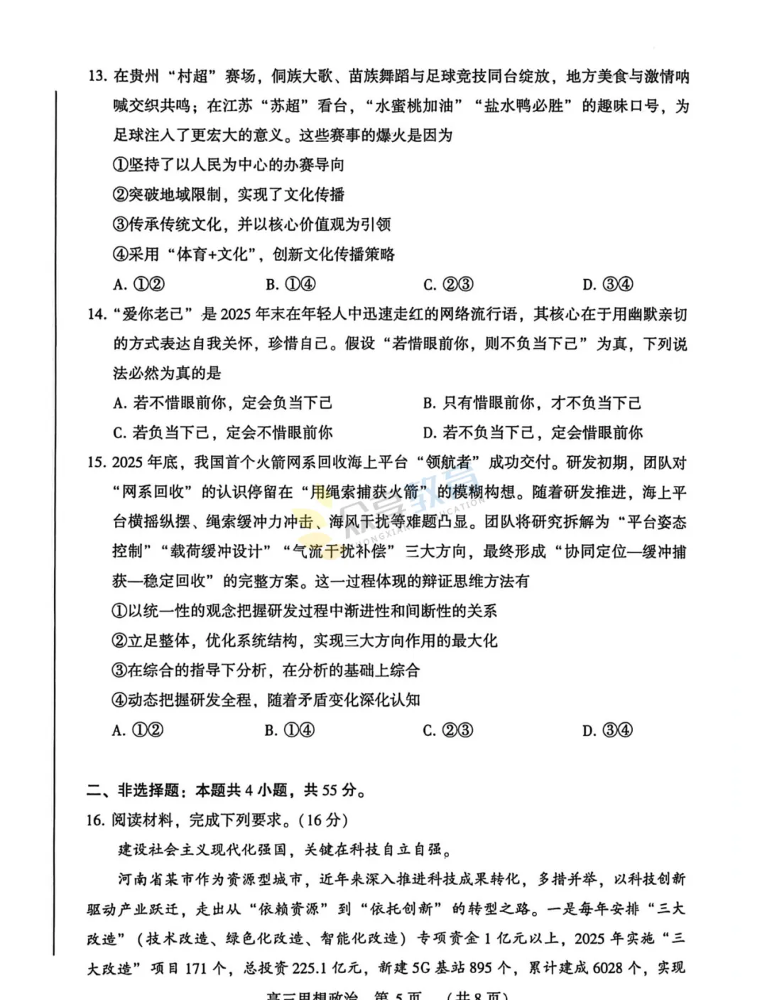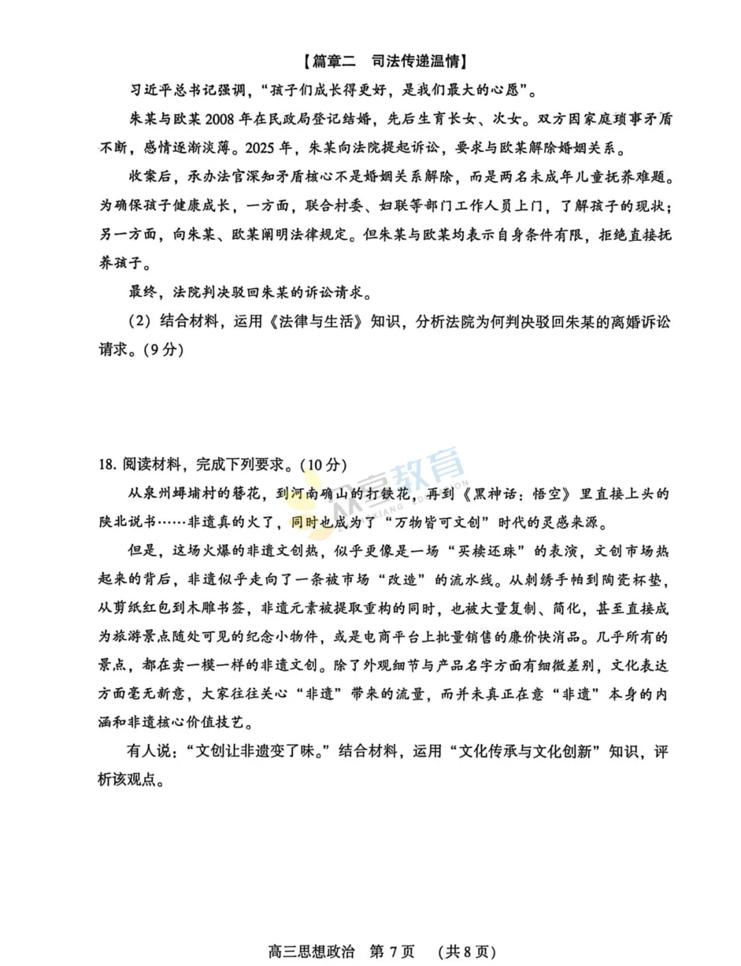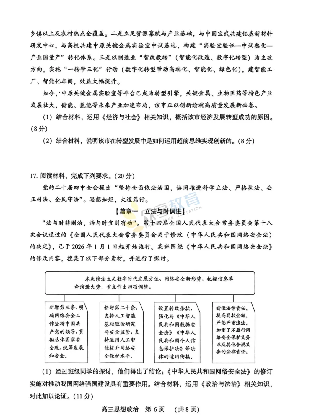 2025-2026学年高三第三次质量检测试卷(政治)