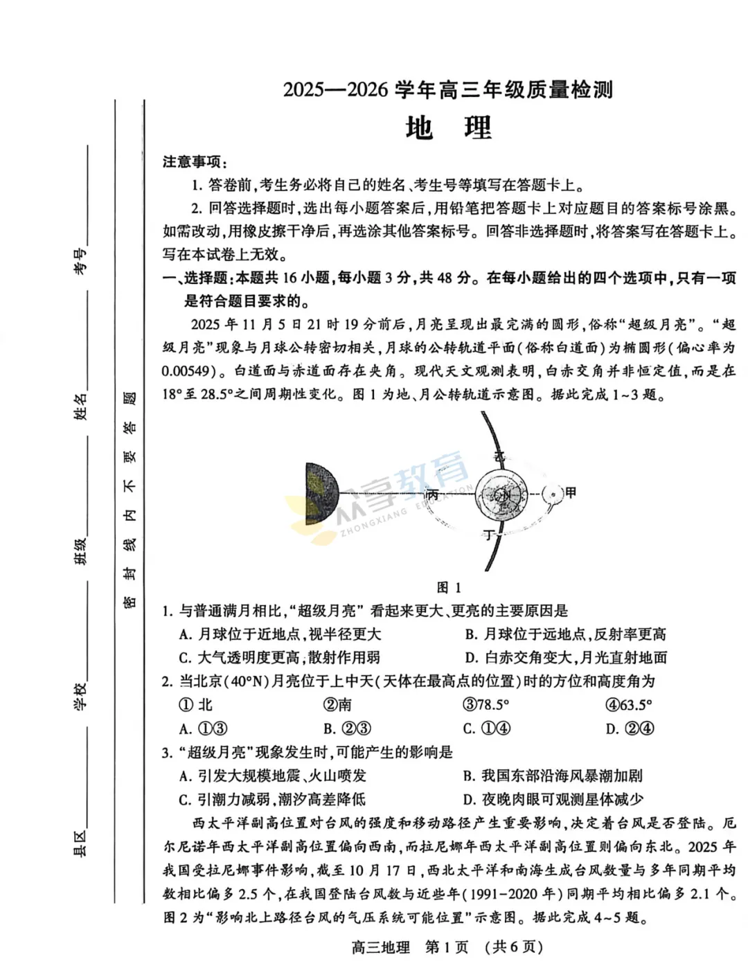 2025-2026学年高三第三次质量检测试卷(地理)