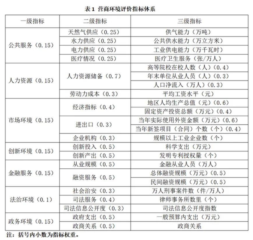 根据表1,写出对“营商环境指数”影响最大的二级指标及理由,并说明相应的三级指标对该二级指标的意义。(18分)