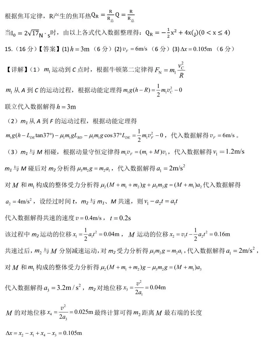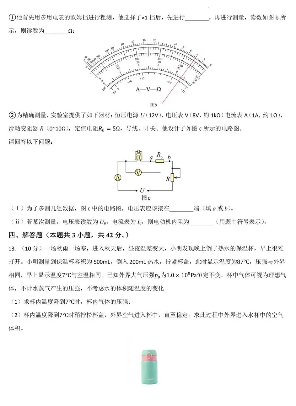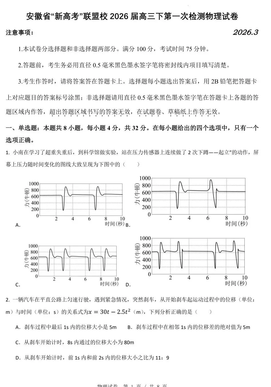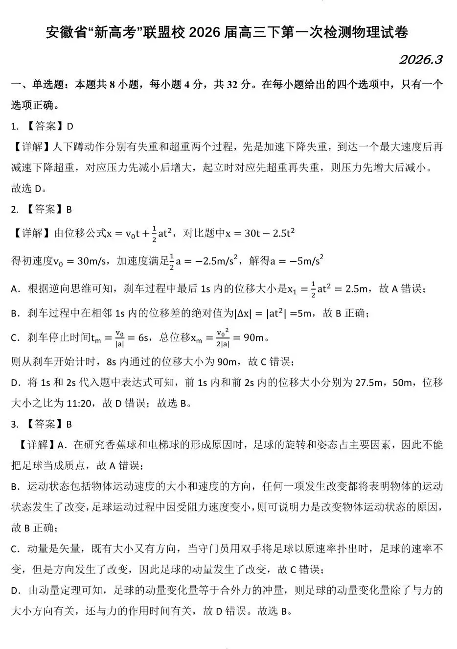 安徽“新高考”联盟校2026届高三下第一次检测物理试卷及答案