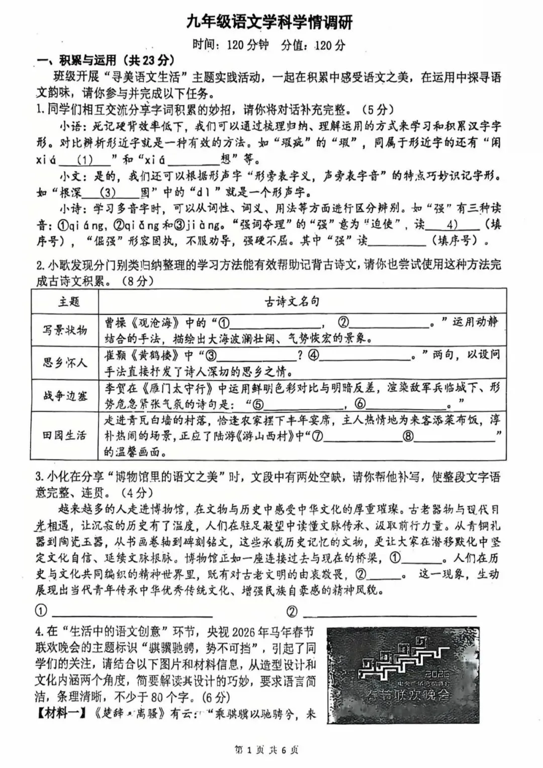 >外总26年一模语文试卷及答案