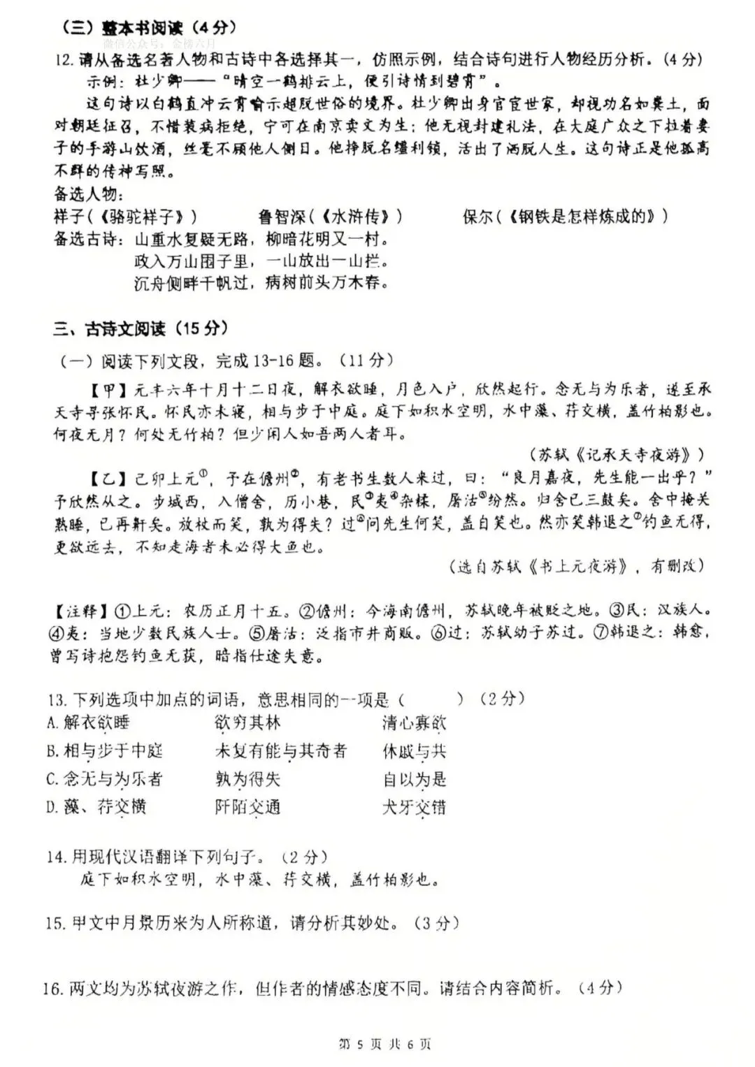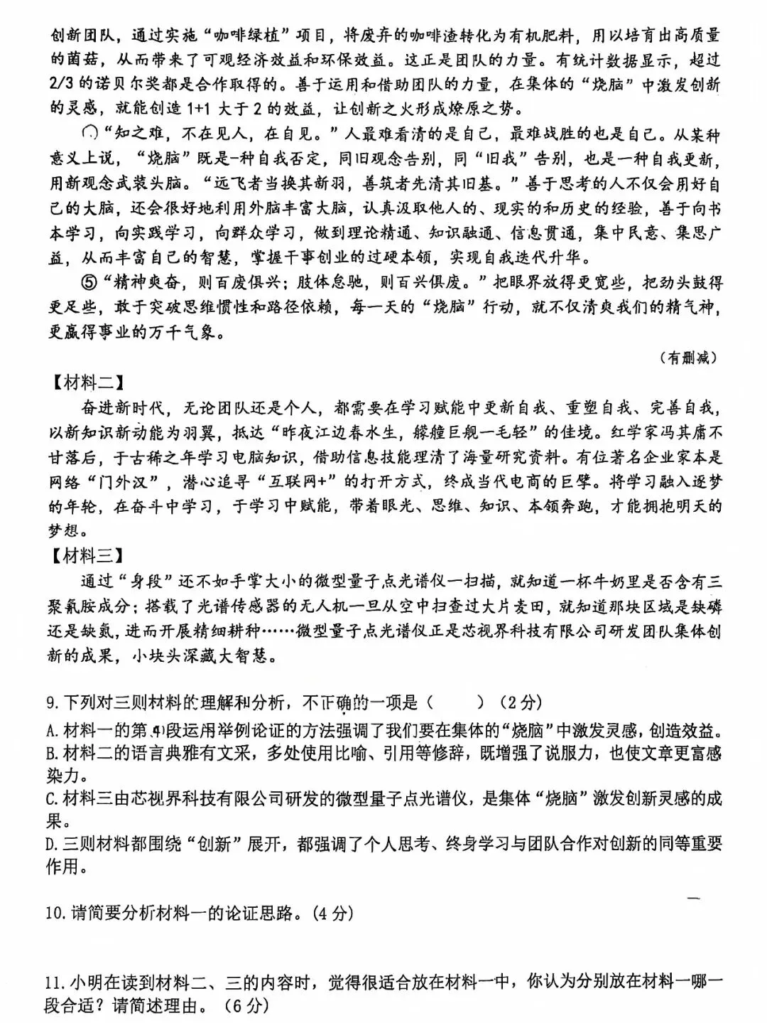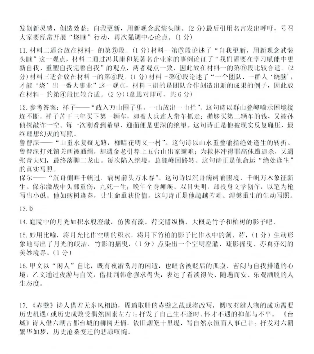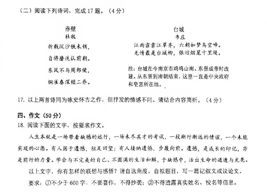 语文试卷结构和往年一样。包含了中国传统文化、实事、思想碰撞以及自我反思等。