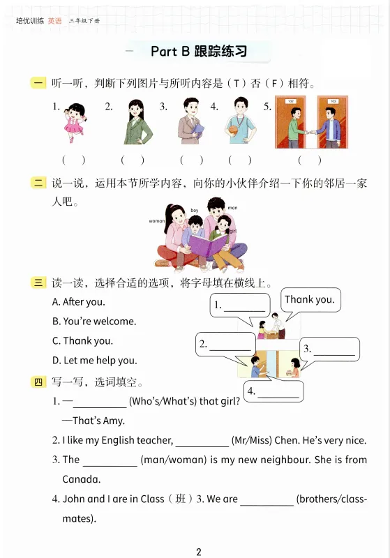 本期分享:26春人教版英语三年级下册同步练习及试卷(有听力音频),如果觉得不错的话,可以转发分享到班级群/年级群,让家长打印出来,帮助孩子学习哦! 本公众号分享的教辅资料,是为了给家长、学生和教师介绍并展示此套教辅资料的内容和特点,大家可以根据提供的资料信息,选择购买合适的正版纸质资料。作为一名家长,我也会经常买很多教辅资料,但其实很多资料都不会从头用到尾,有的写几页可能就不用了,个中原因有很多。但如果在购买之前,能够通过我们对比更多的教辅资料,选择最适合孩子的资料,这才是我们分享的真正意义!我们也建议各位家长、老师朋友,如果觉得某个资料比较合适,请一定要购买纸质正版!毕竟正版纸质印刷更精美、使用更系统、更方便。资料无限,时间有限,任何类型的资料有一两套就好,切不可这套做两页,那套做两页,这样不会有好的效果。祝孩子们学有所成! 亲爱的家长和同学们,优质的教育资源是孩子成长路上的明灯。希望今天的分享能为孩子的学习注入新动力!资料虽好,更要及时运用哦~建议将文章【收藏】或分享给身边需要的朋友,让知识传递温暖。后续我们还会持续更新各年级重点题型解析、学霸笔记等实用内容,点击下方名片关注我们,及时获取更多资源!