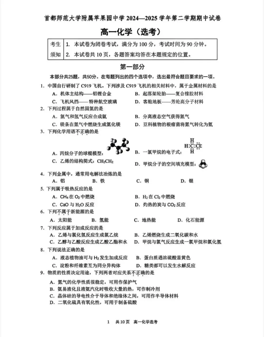 29.北京市中关村中学2024-2025学年高一下学期期中化学试题
