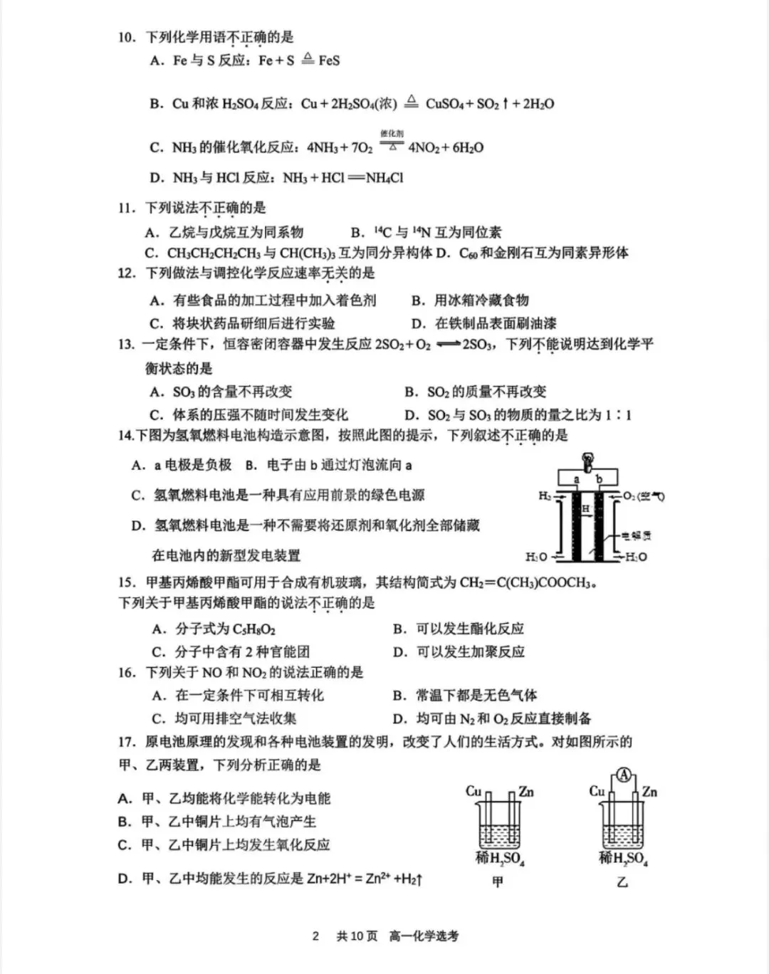 28.北京市通州区2024-2025学年高一下学期期中质量检测化学试卷