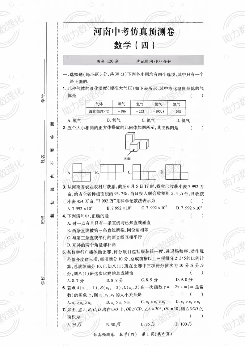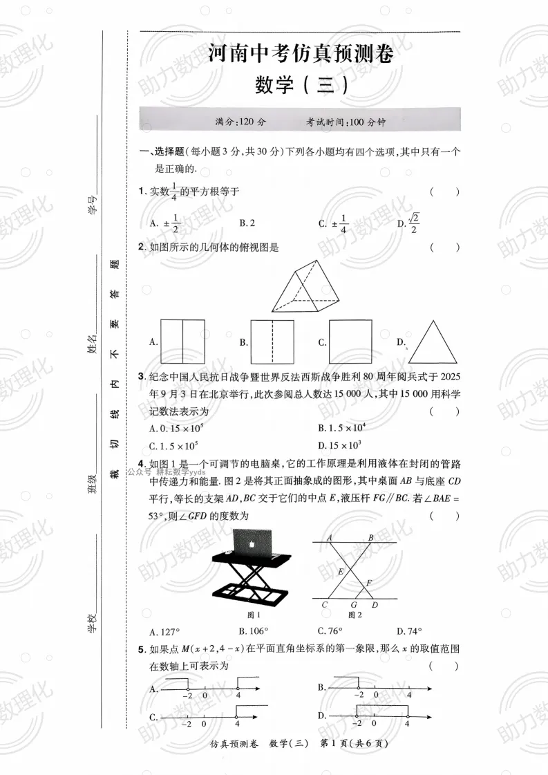 2026河南中考模拟数学试卷及答案解析(卷3-4)
