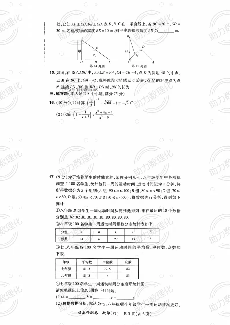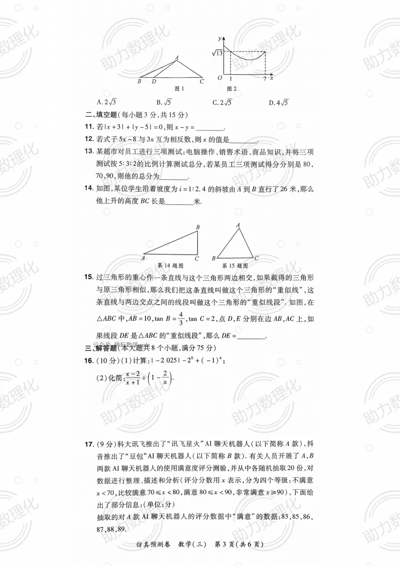 2026河南中考模拟数学试卷及答案解析(卷14-15)