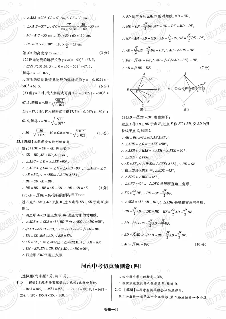 2026河南中考模拟数学试卷及答案解析(卷11-12)