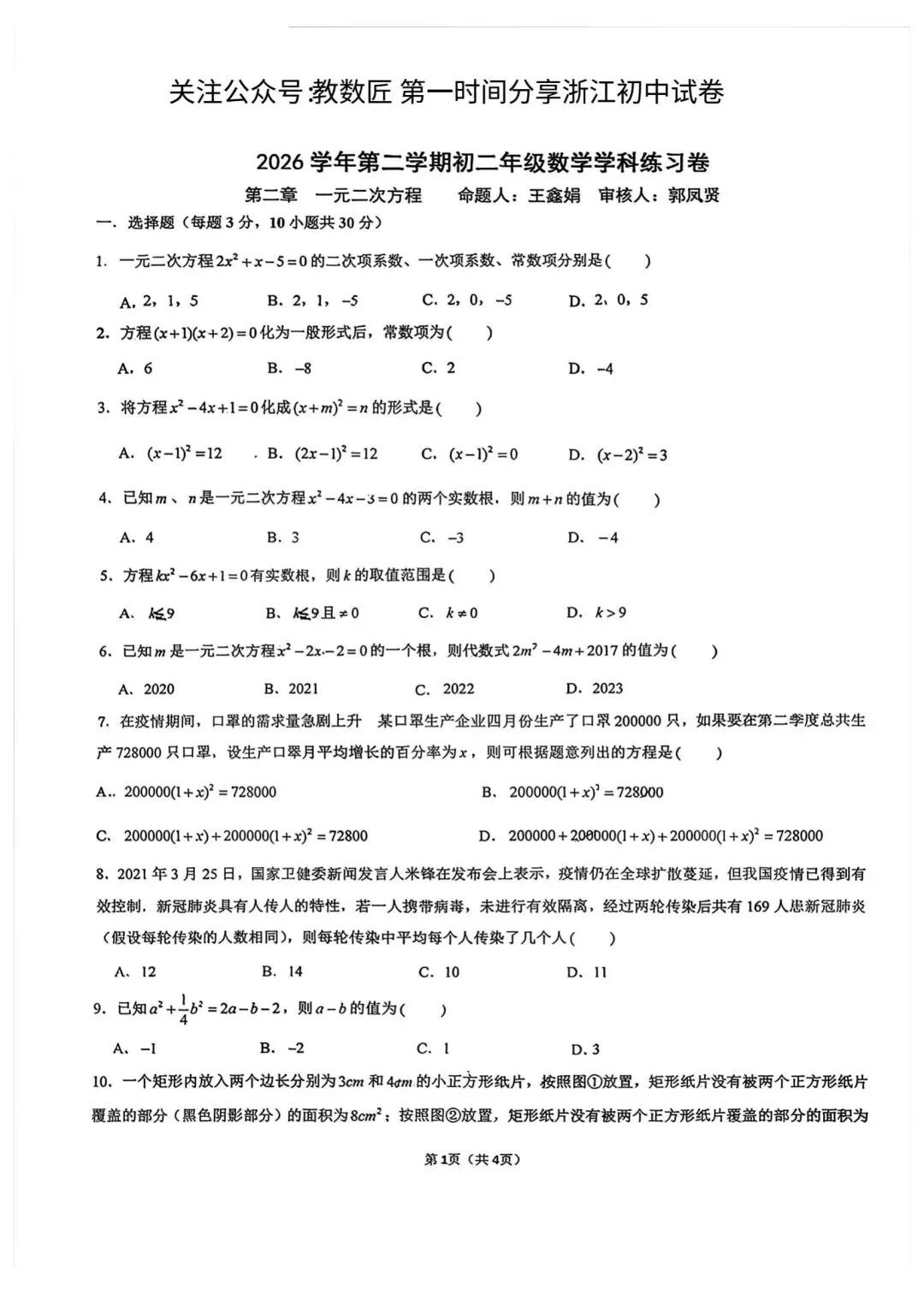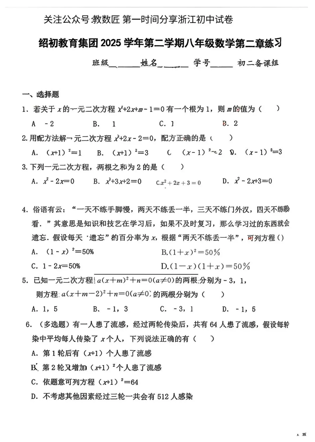 文末可领取电子版试卷【绍初教育集团】⏬【绍兴建功中学】⏬【绍兴元培中学】⏬—————————————————— ——————————————————2026春•八下期中期末汇编(专题训练)⏬【新学期必备】【新教材】【纸质版】——————————————————电子版试卷(无答案)⏬