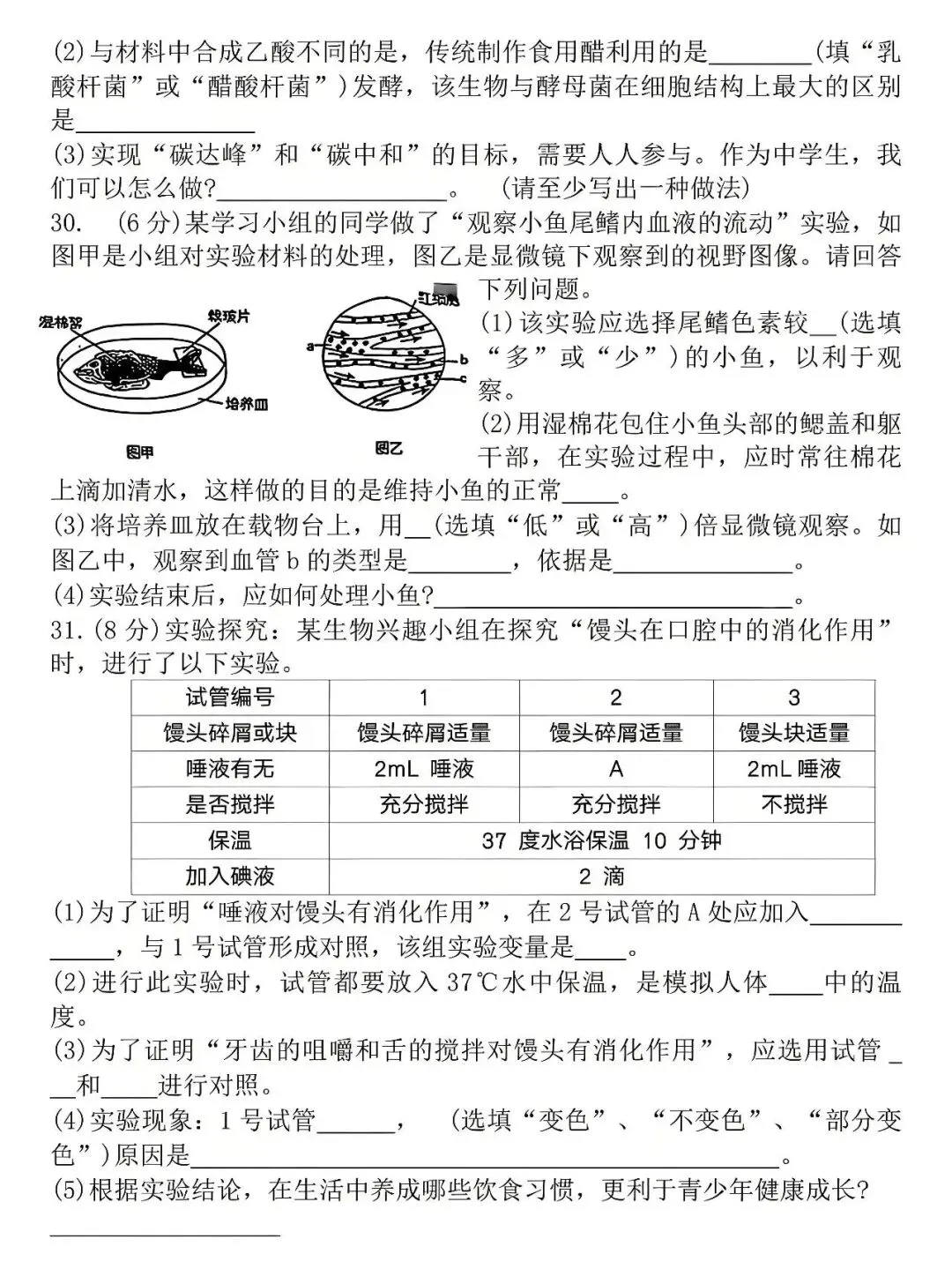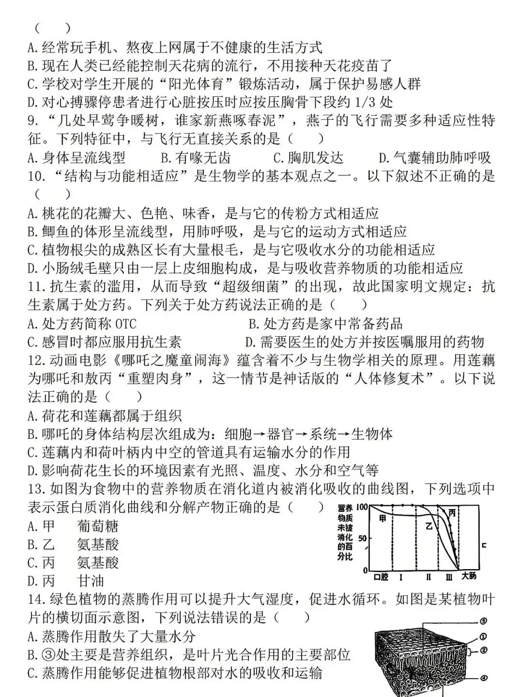 >试卷:2026年生物学中考模拟试卷(1)