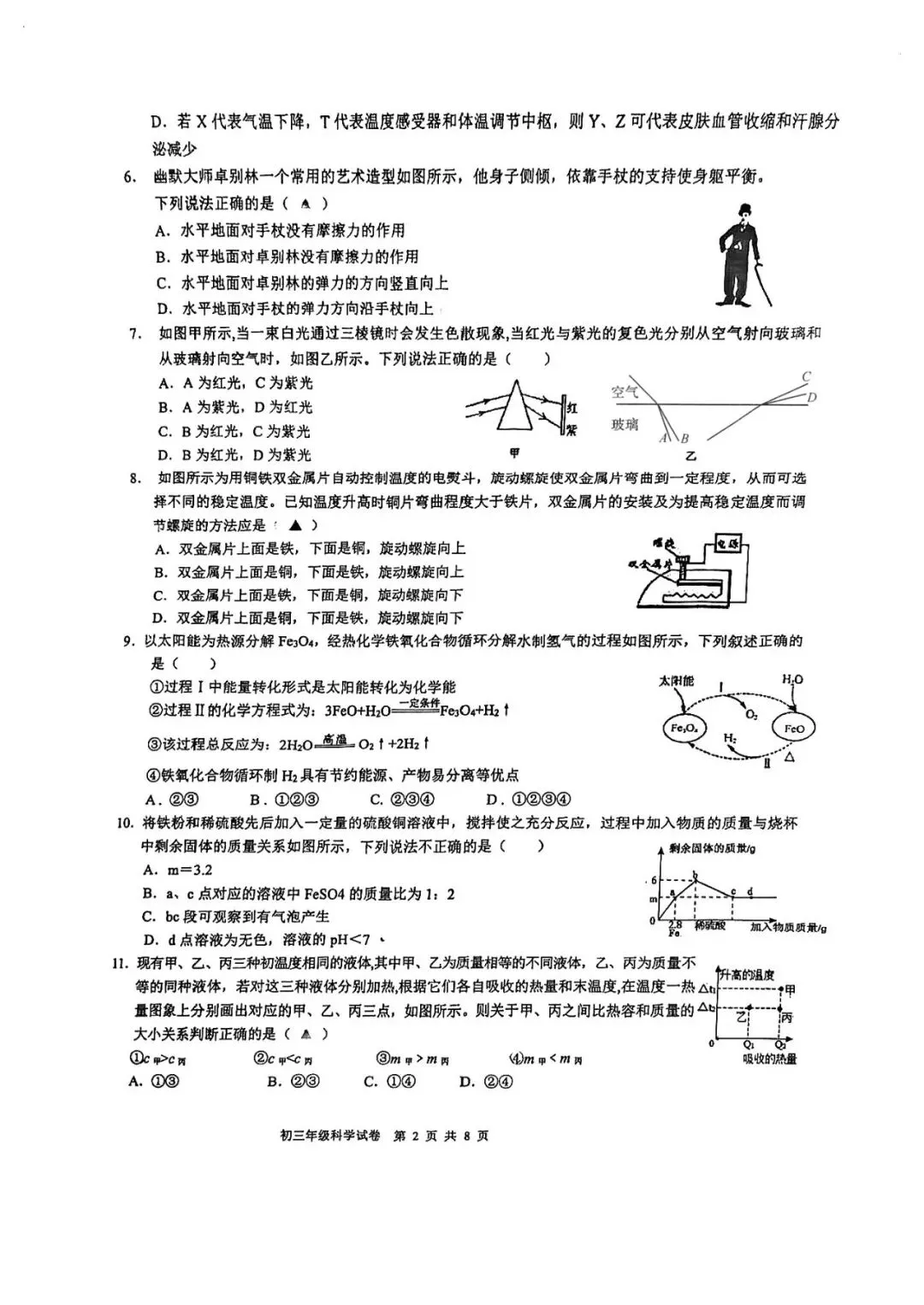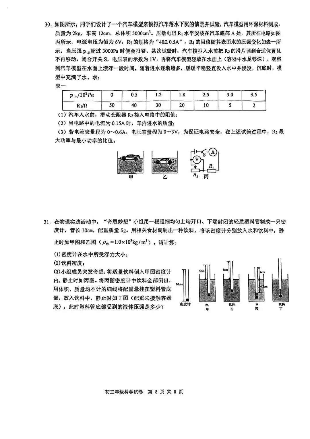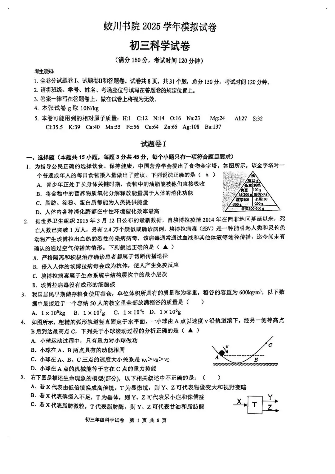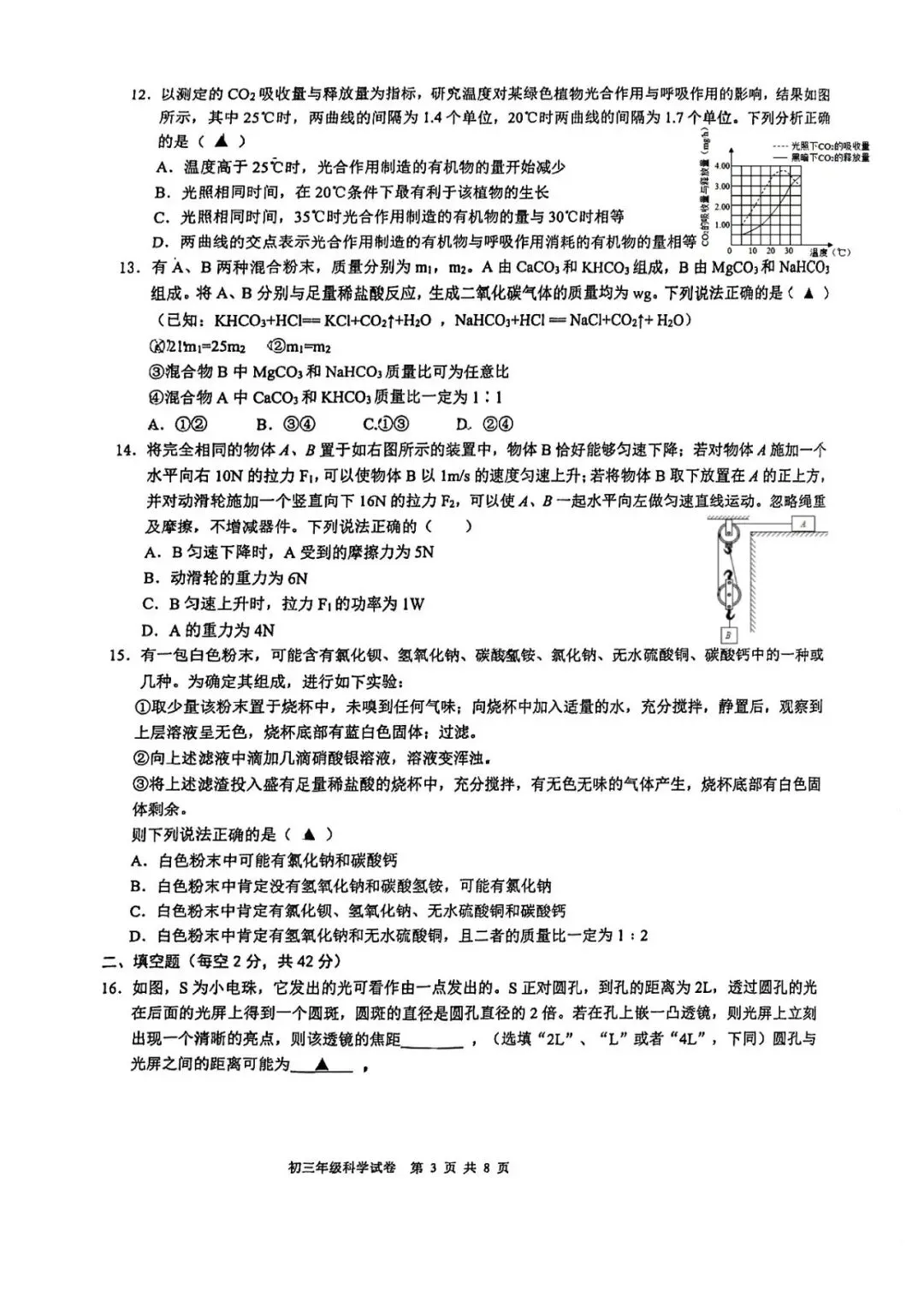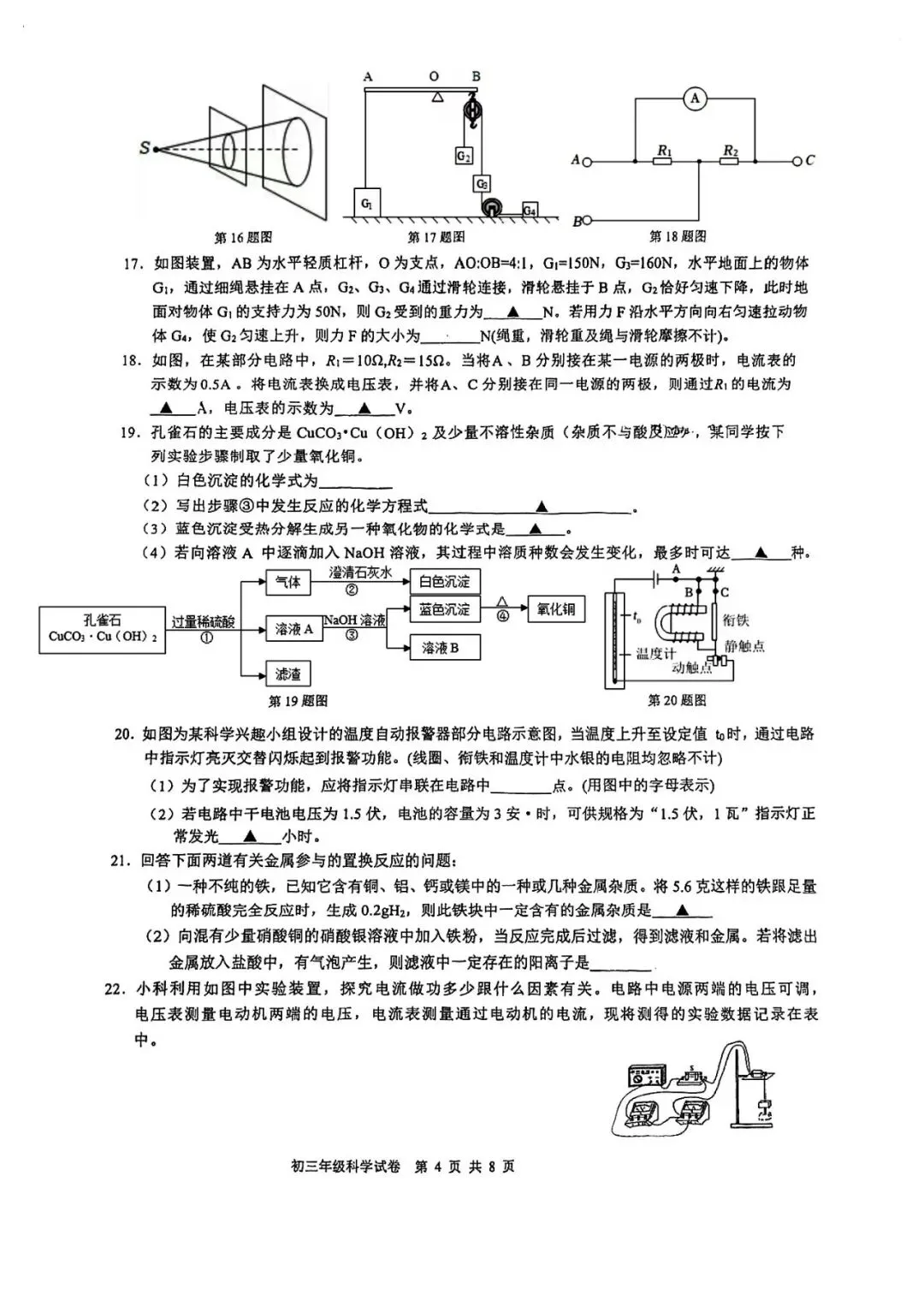 通过网盘分享的文件:2026年3月宁波蛟川书院九下一模科学试卷+答案