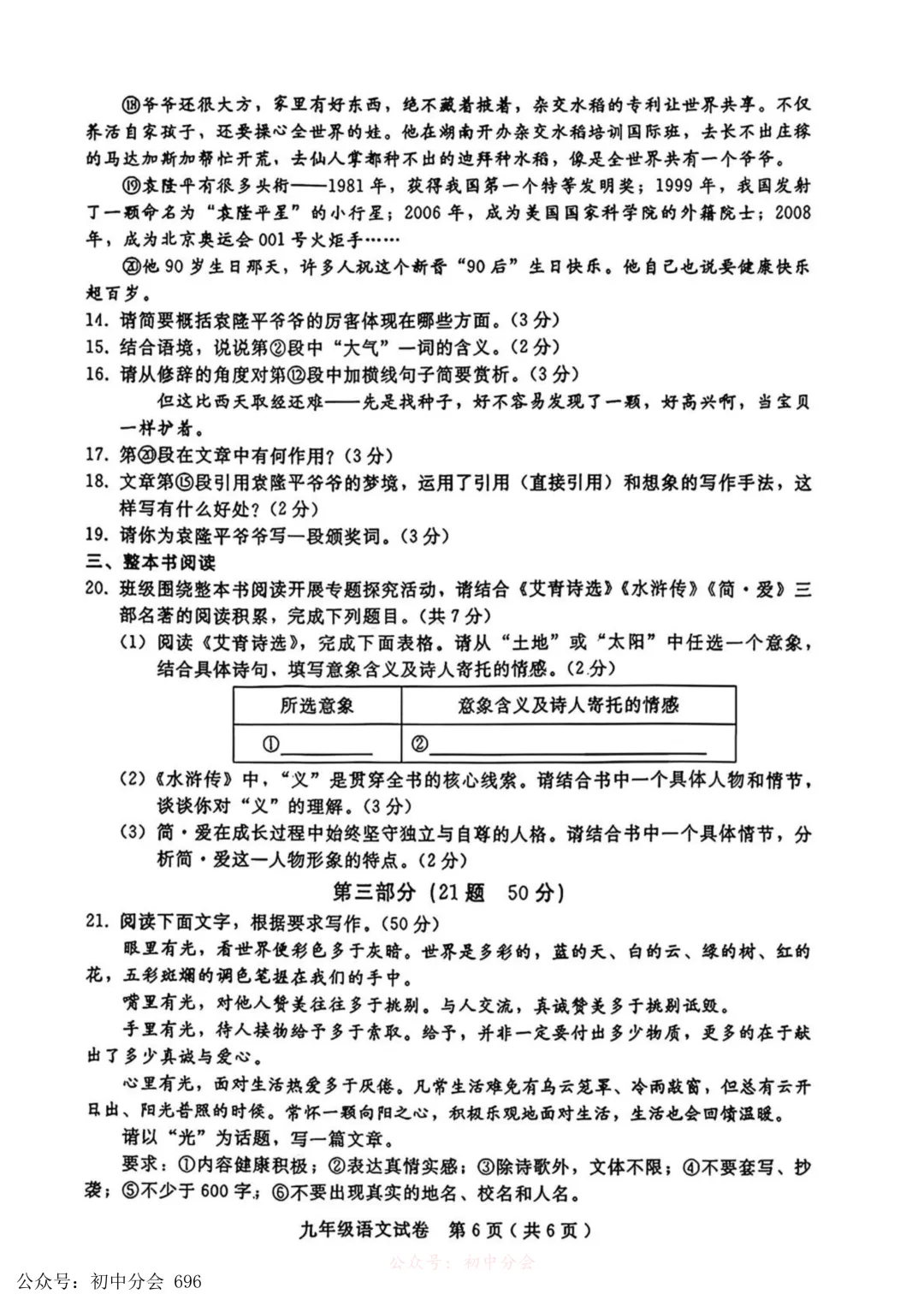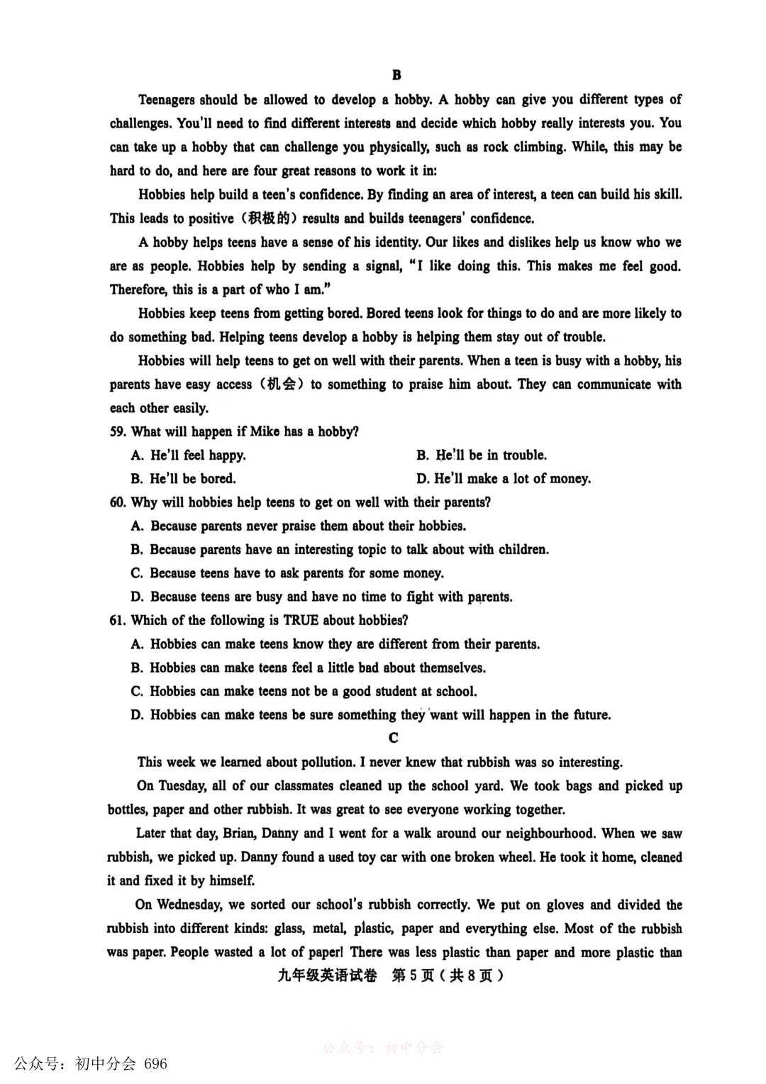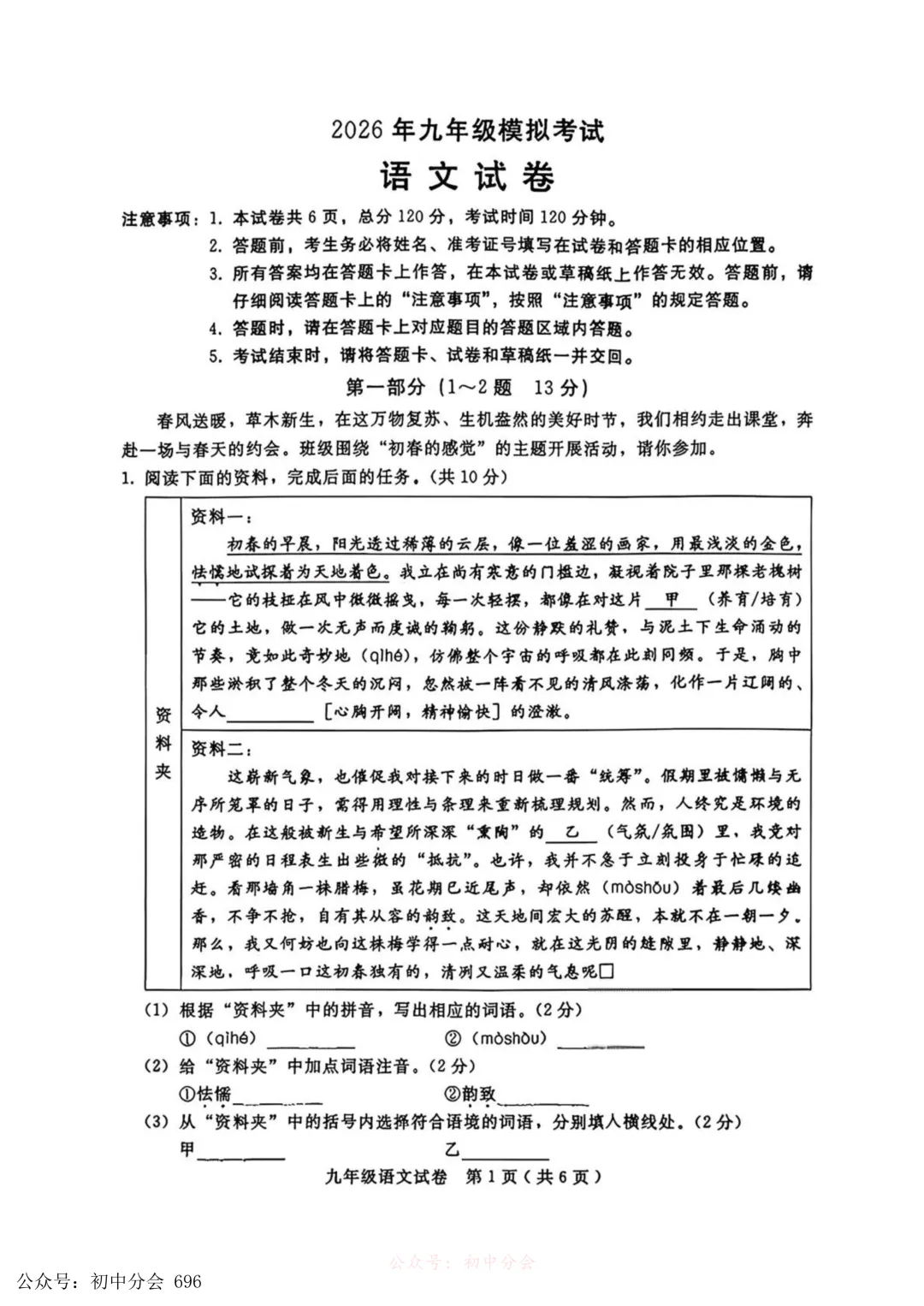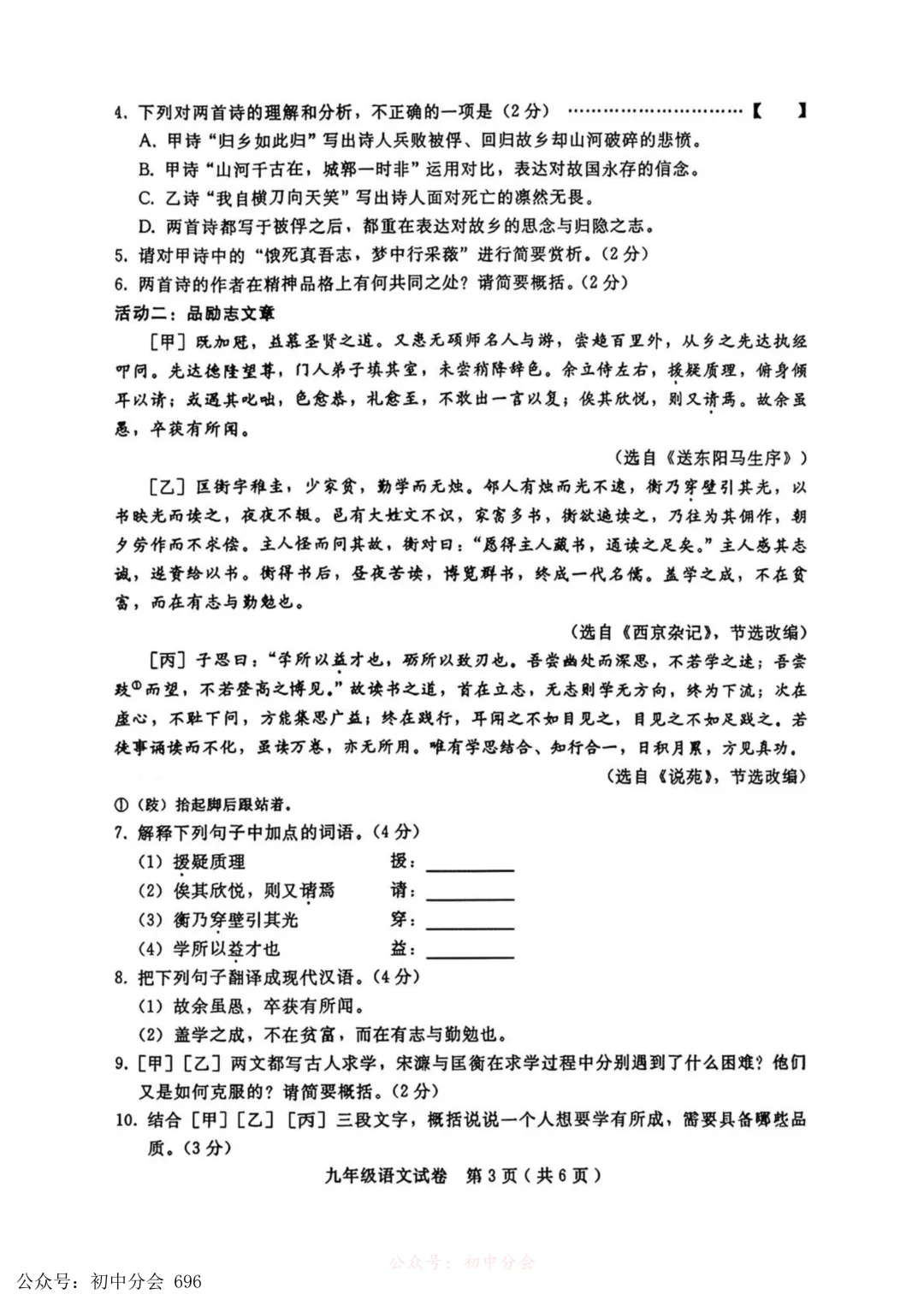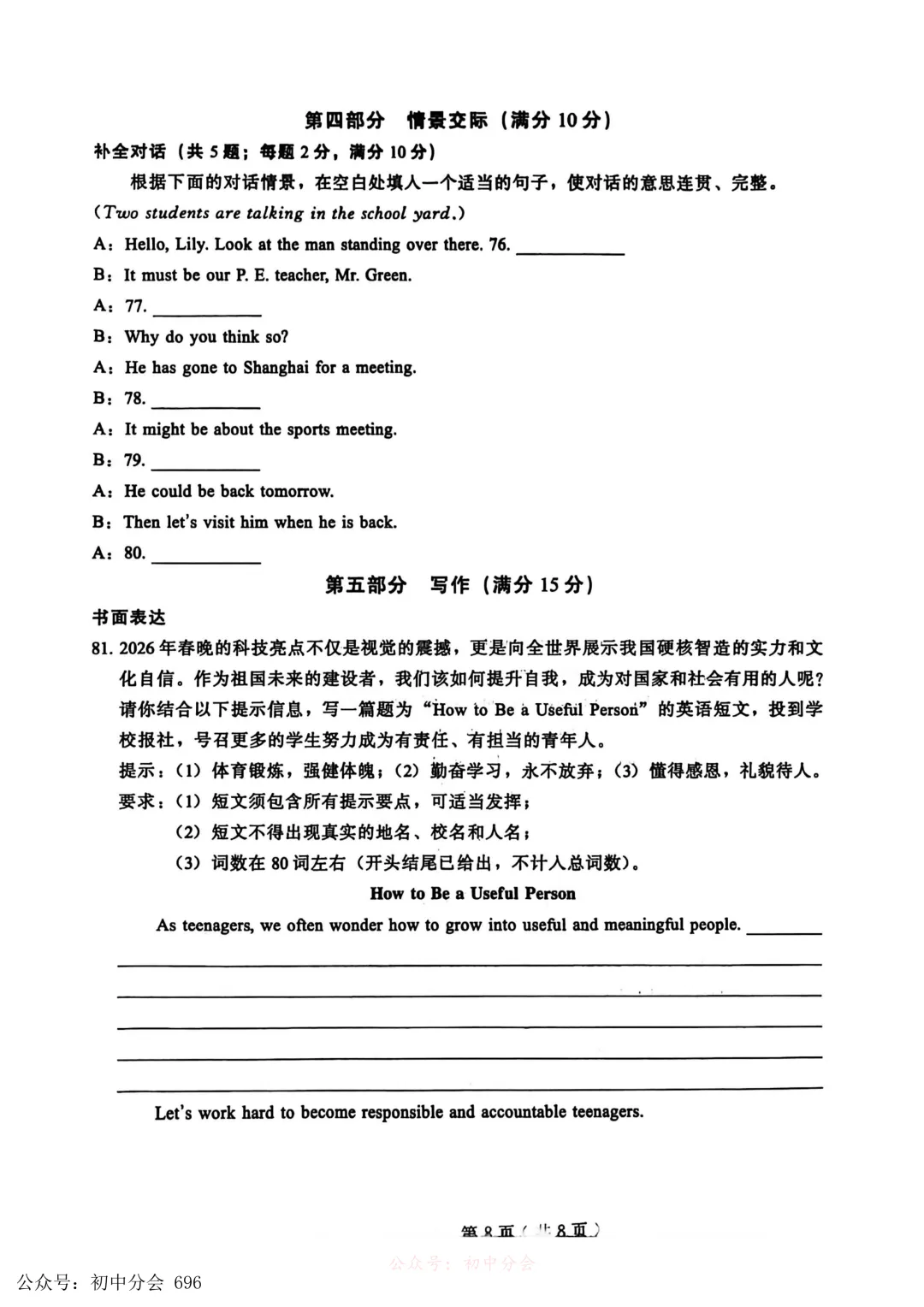 2026.3九年级中考摸底检测试卷及答案(全科含听力)