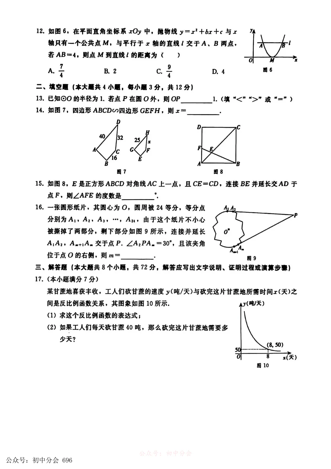 2026.3保定乐凯中学九年级开学测数学试卷及答案