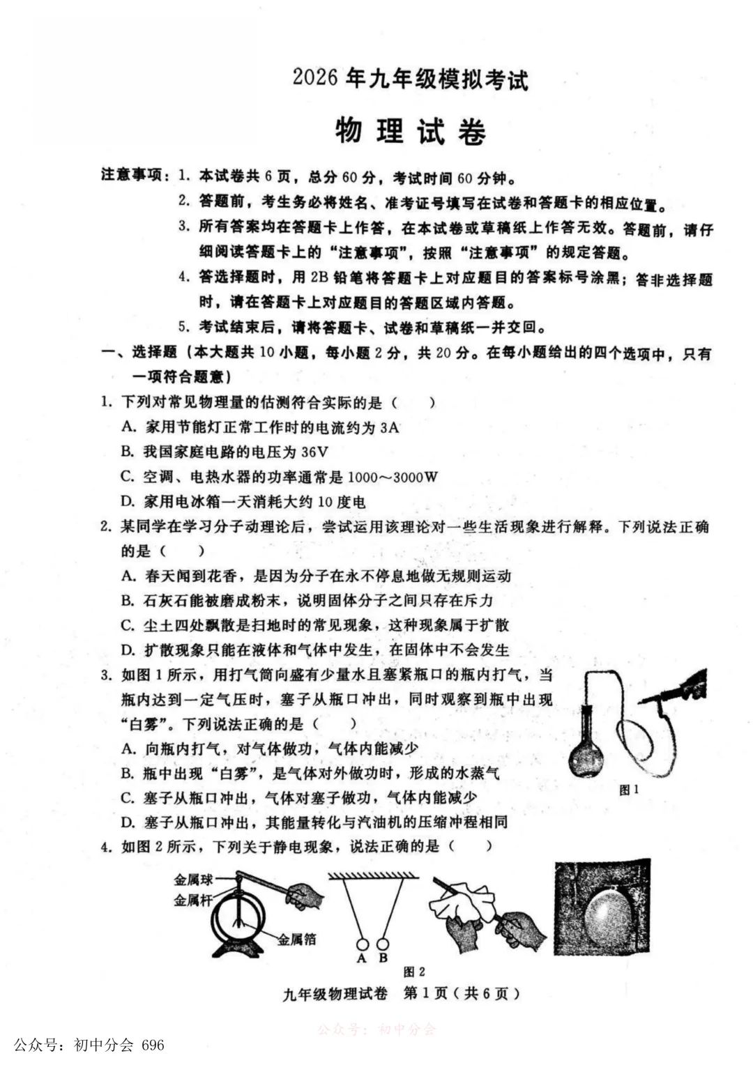 2026年河北省初中学业水平摸底考试及答案(全科)