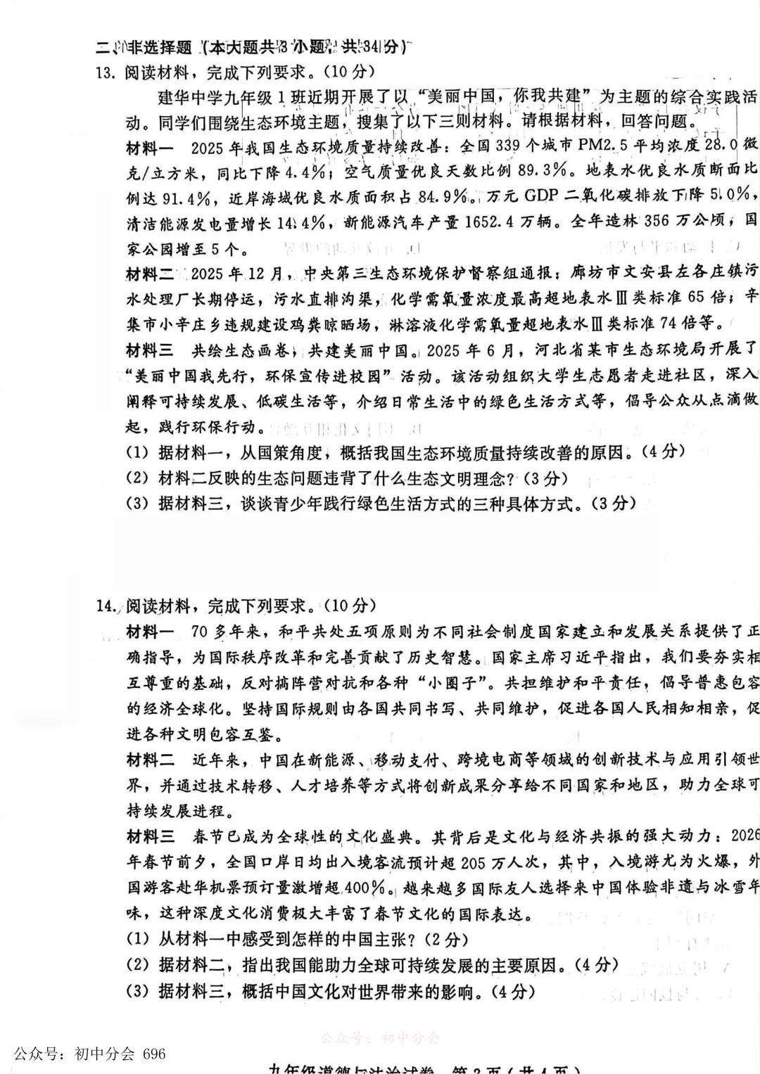 2026天津红桥区初三结课考道德与法治试卷深度解析(可下载)