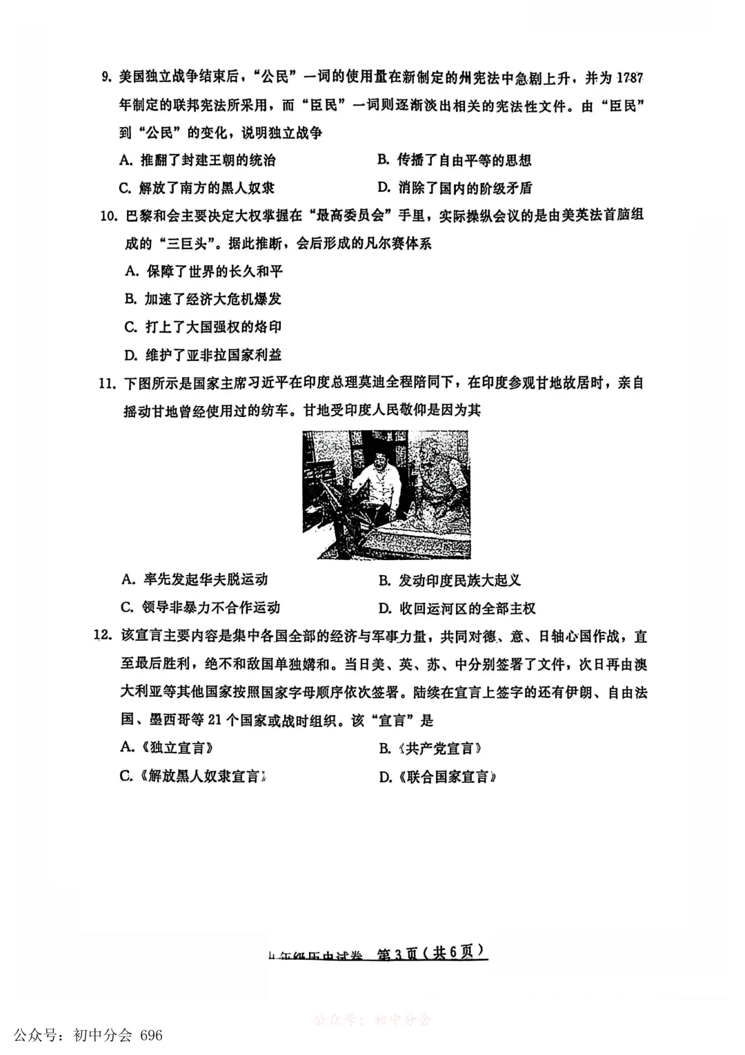 2026天津红桥区初三结课考历史试卷深度解析(可下载)