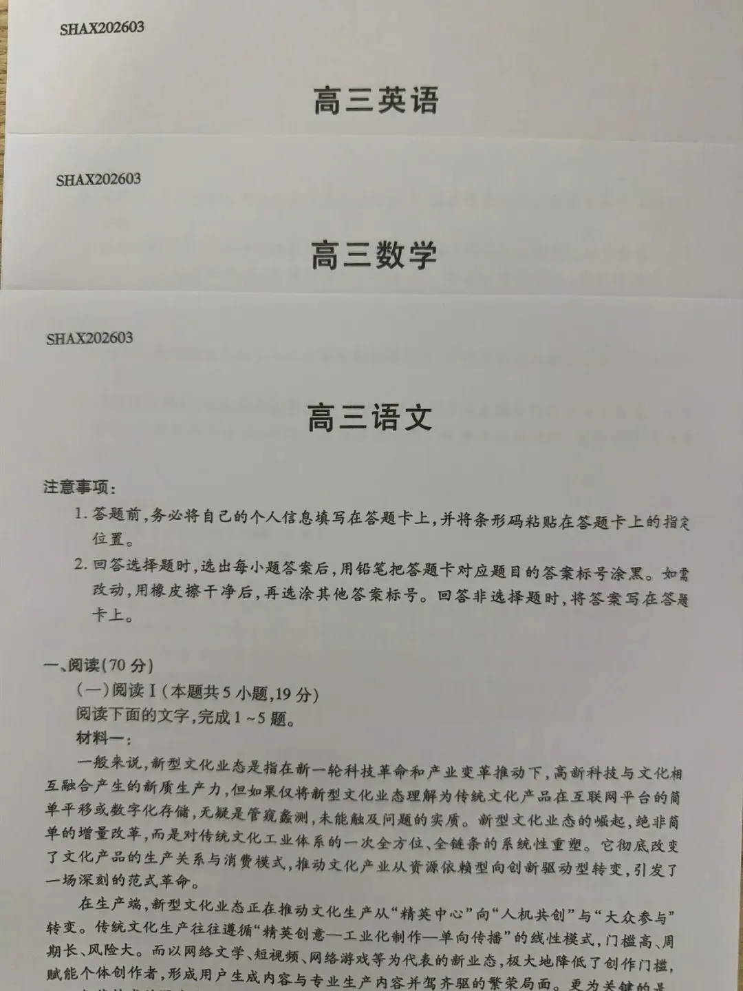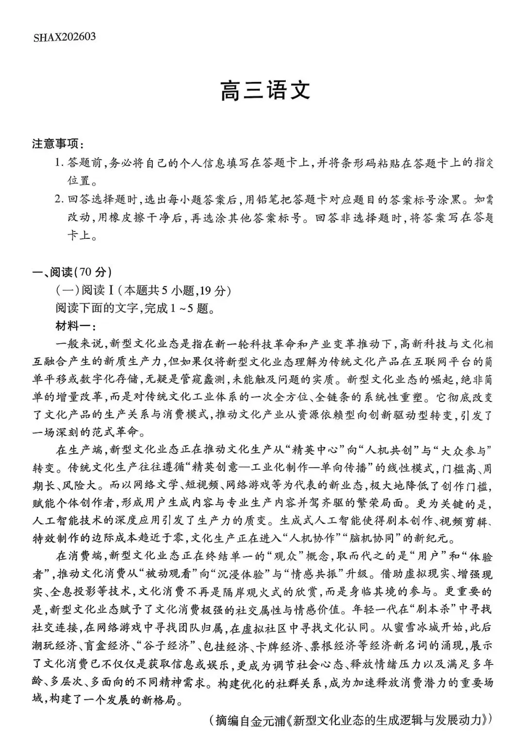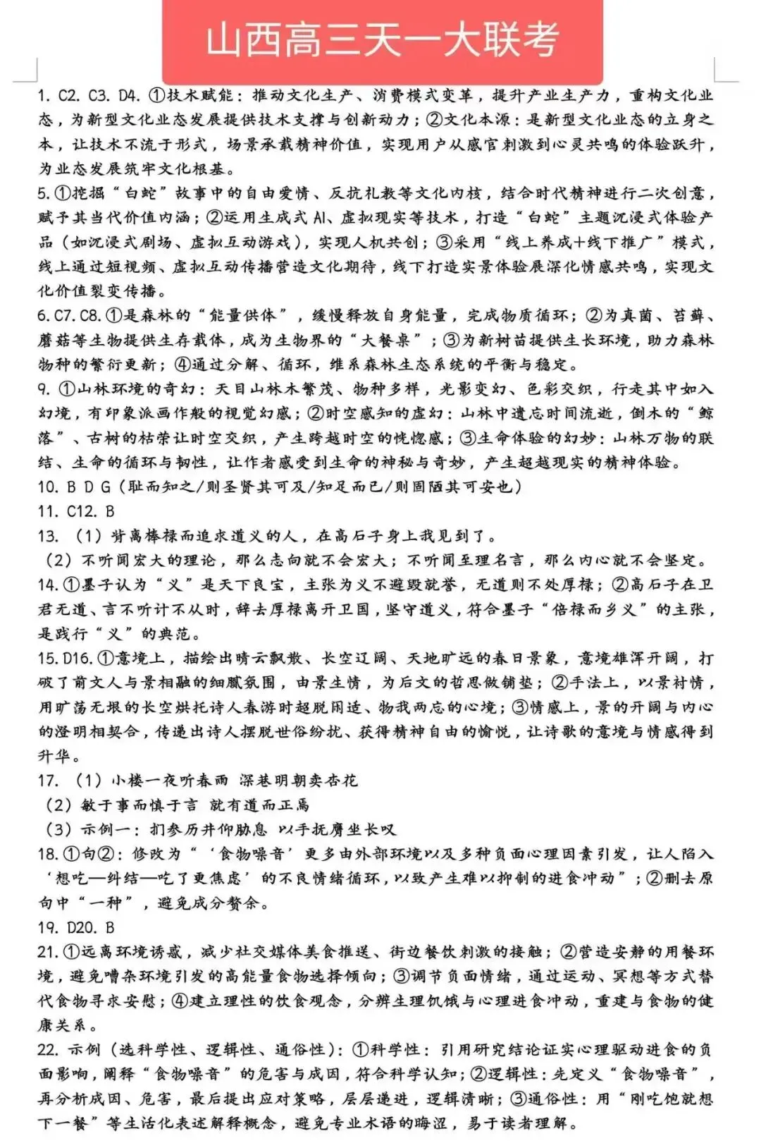 考试名称:2026年山西省天一大联考高三3月联考