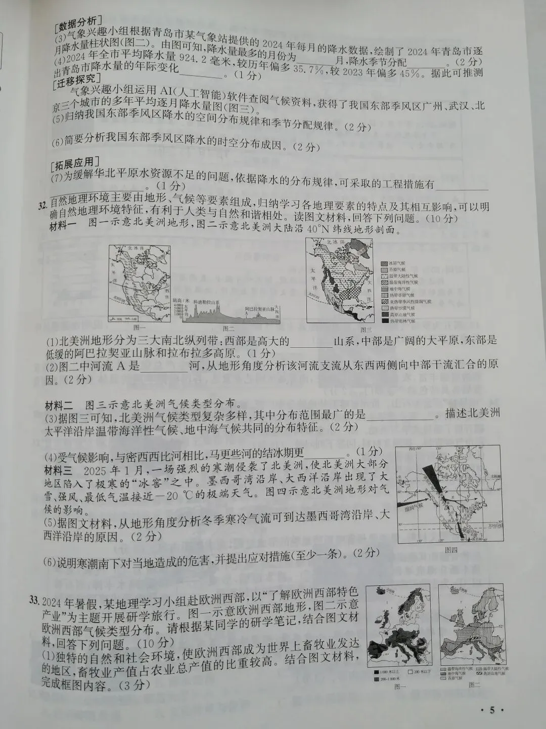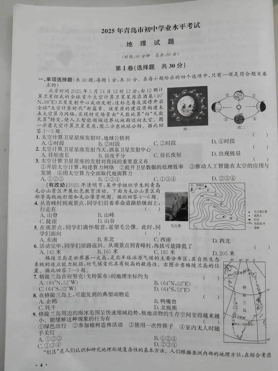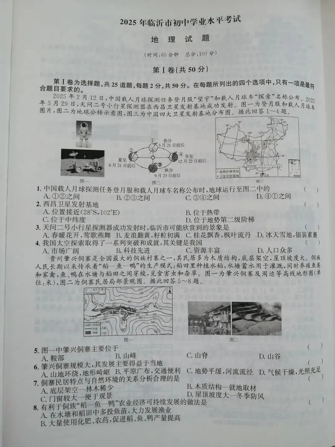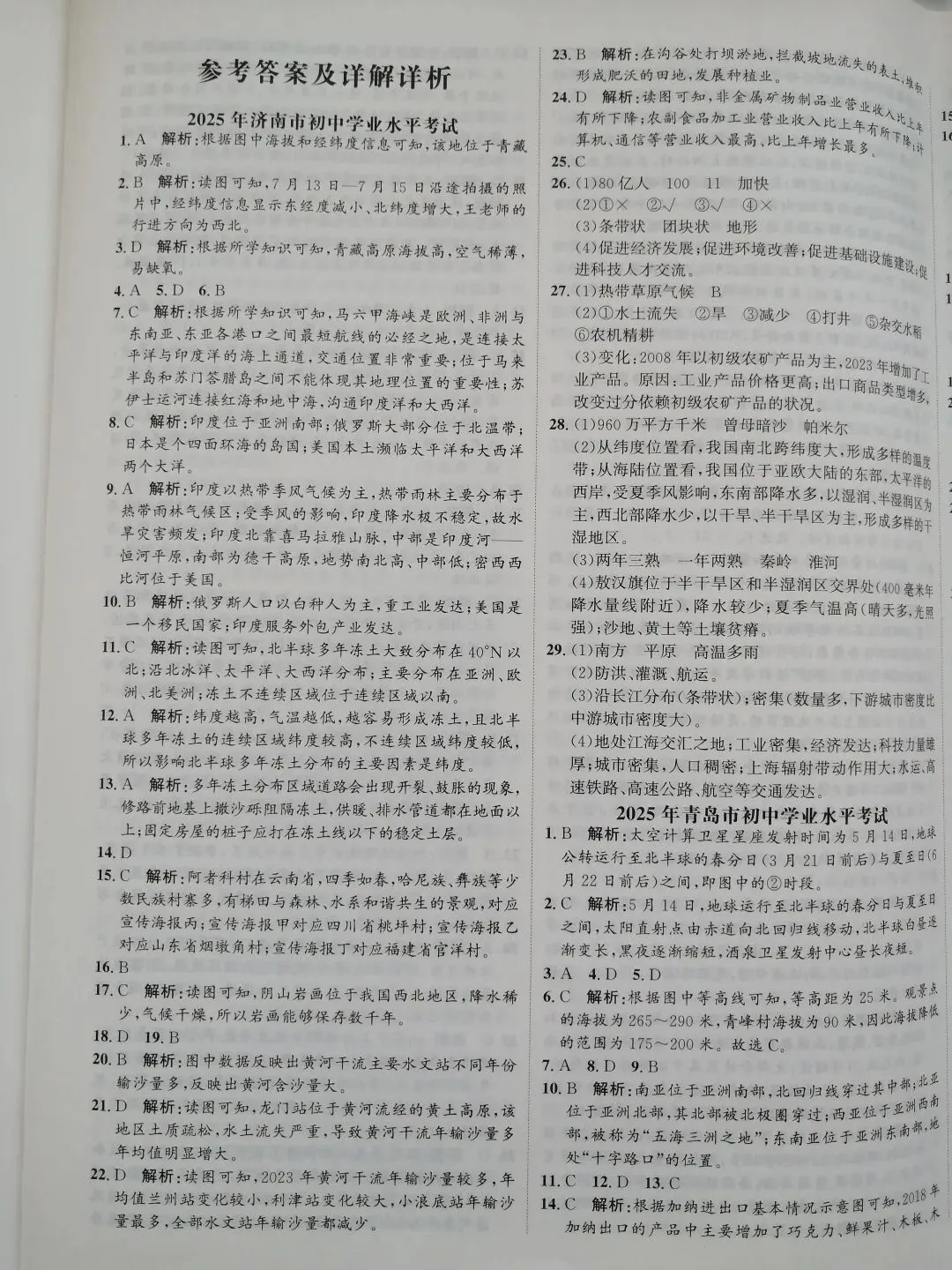 >初中学业水平考试山东中考2025年真题试卷5套(附答案)