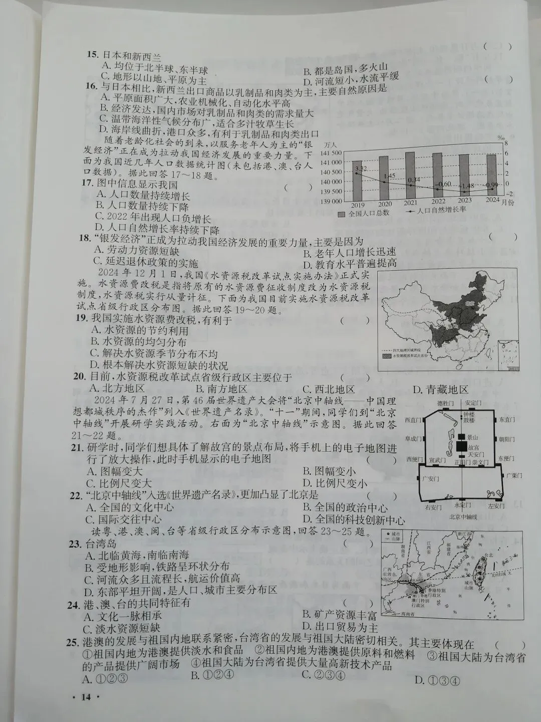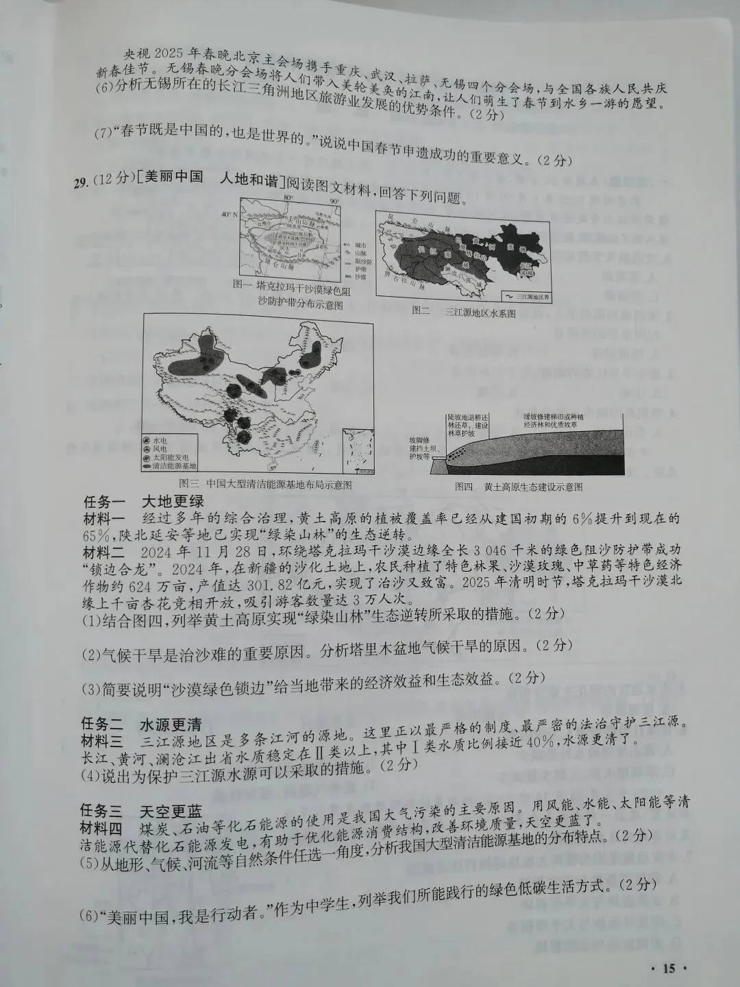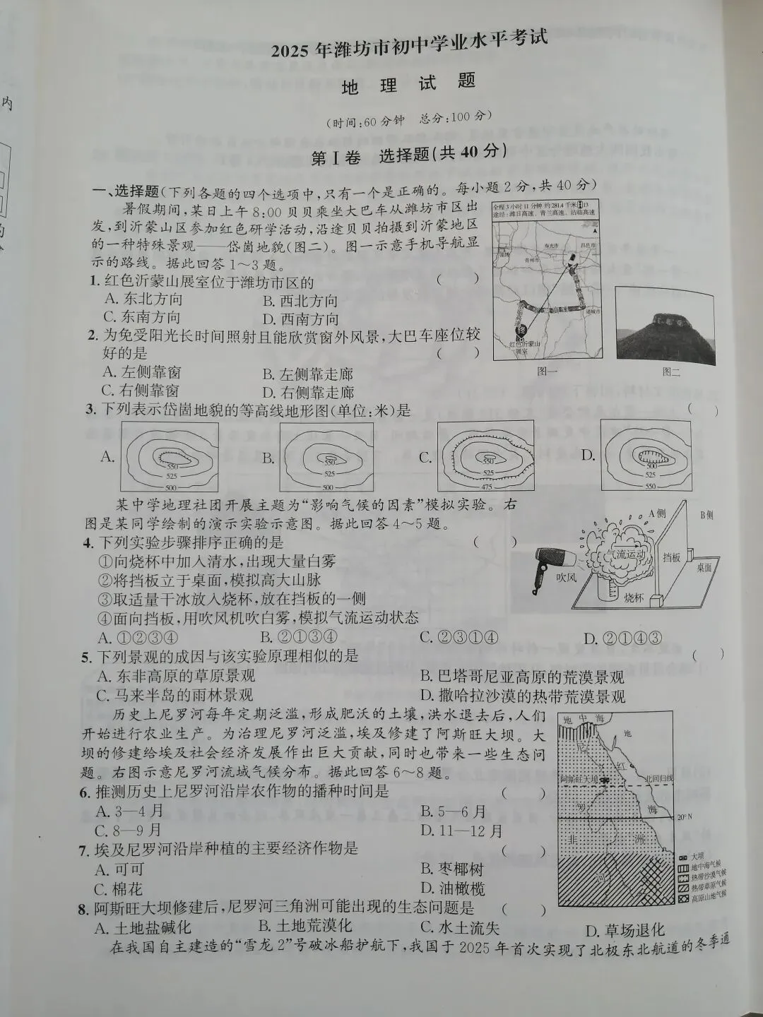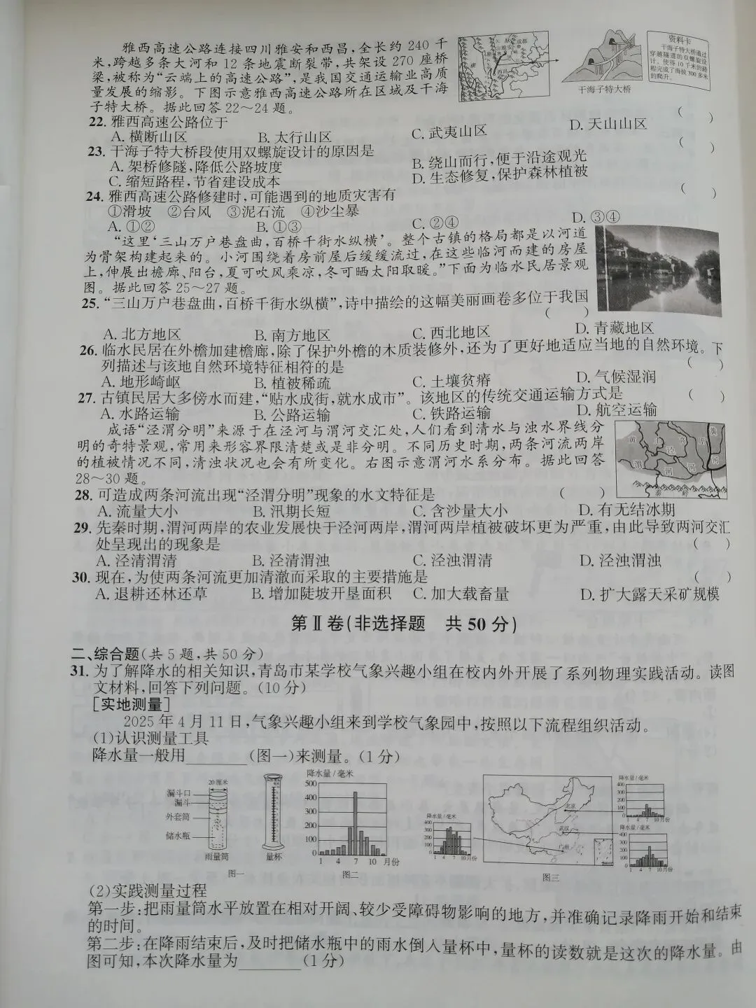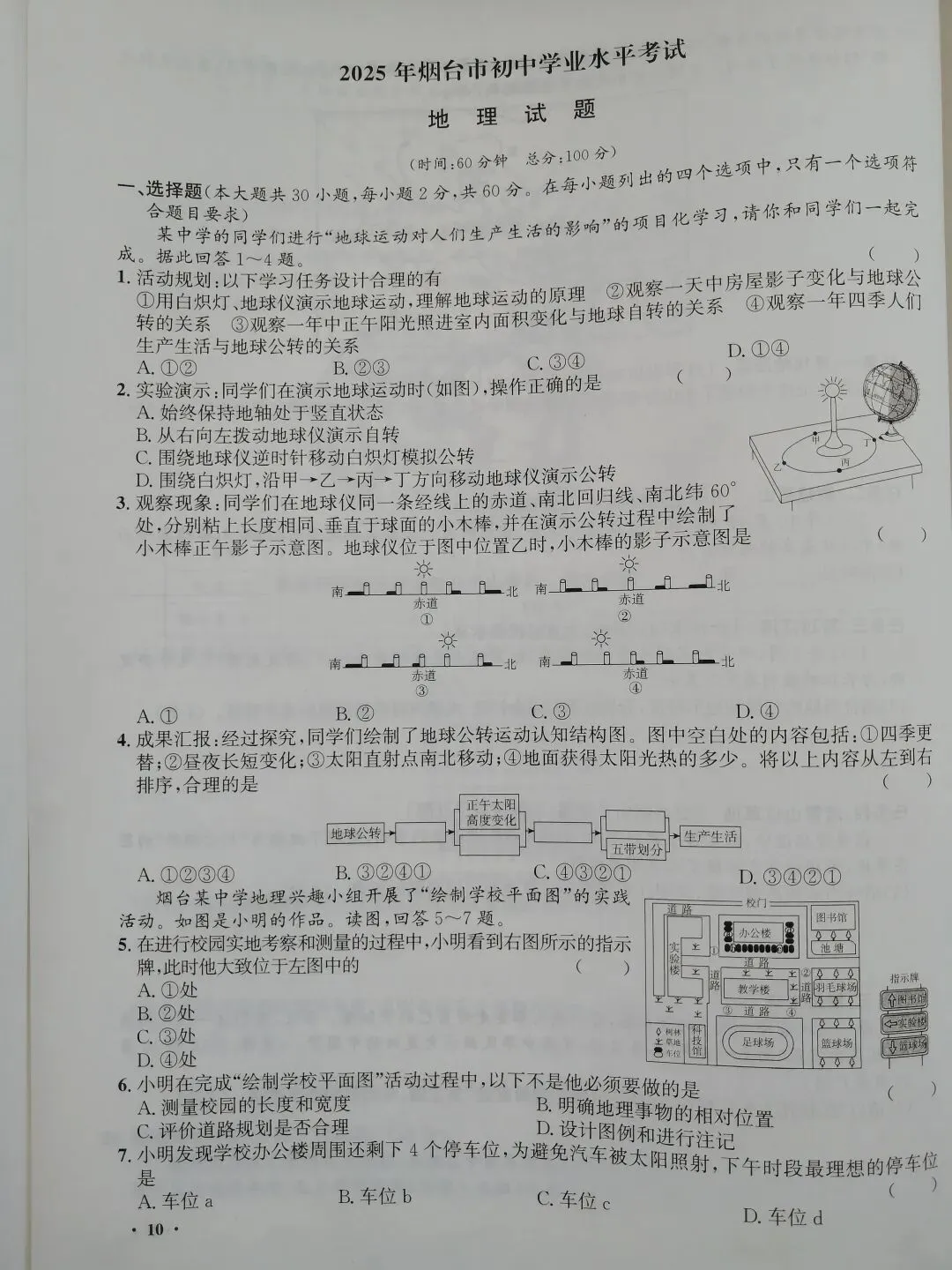 >初中学业水平考试山东中考2025年真题试卷5套(附答案)