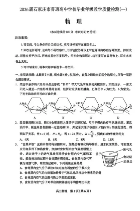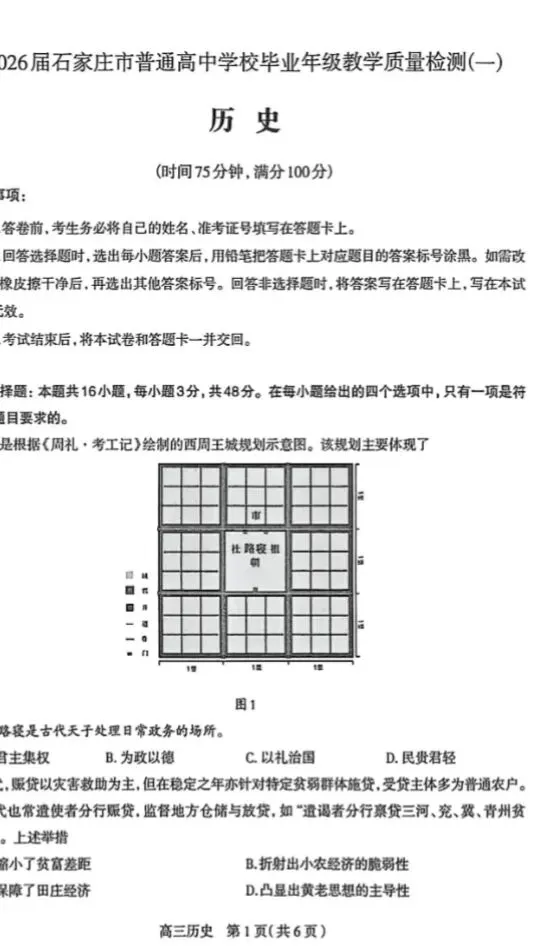 >2026石家庄一模物理试卷及答案,历史试卷及答案