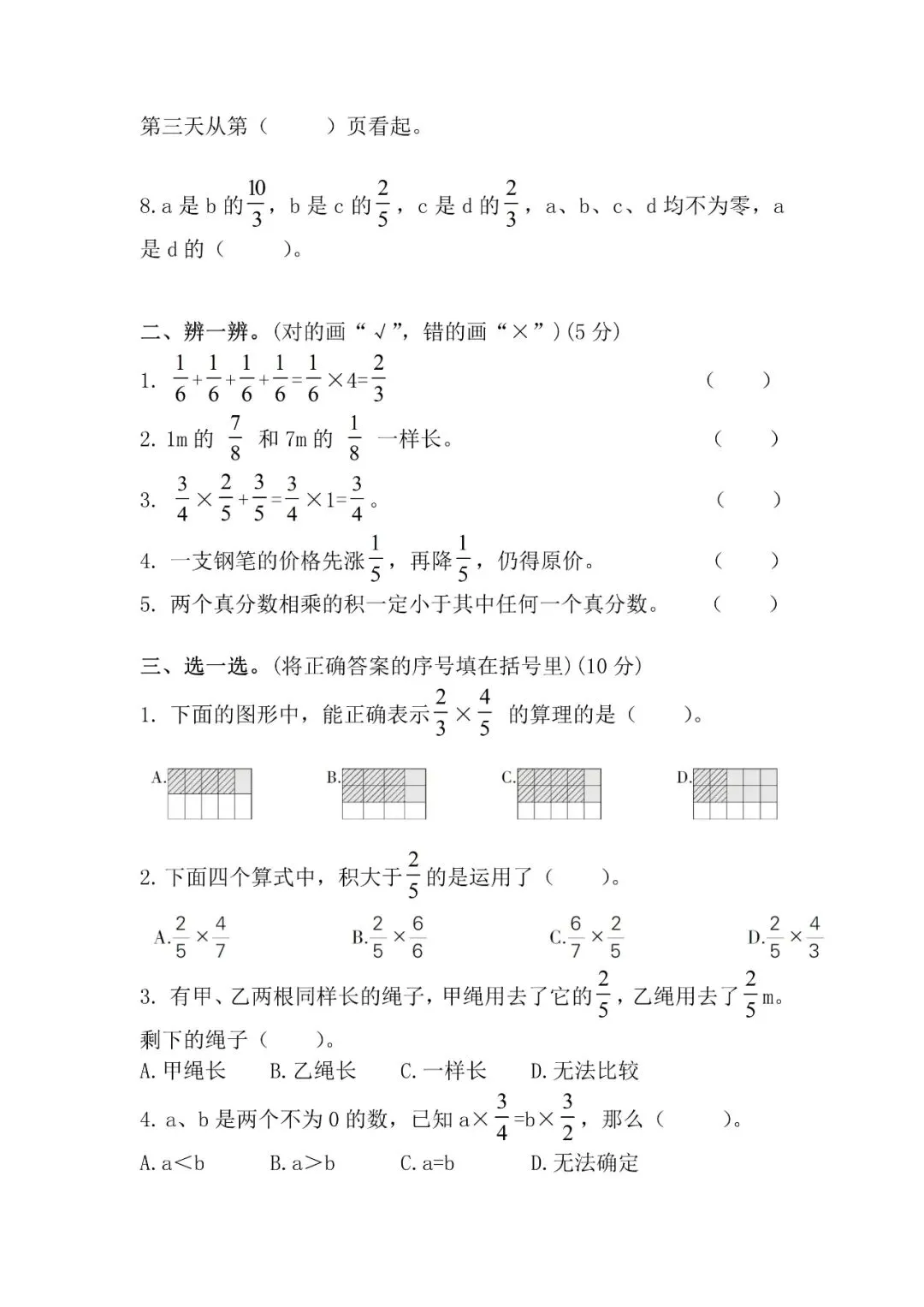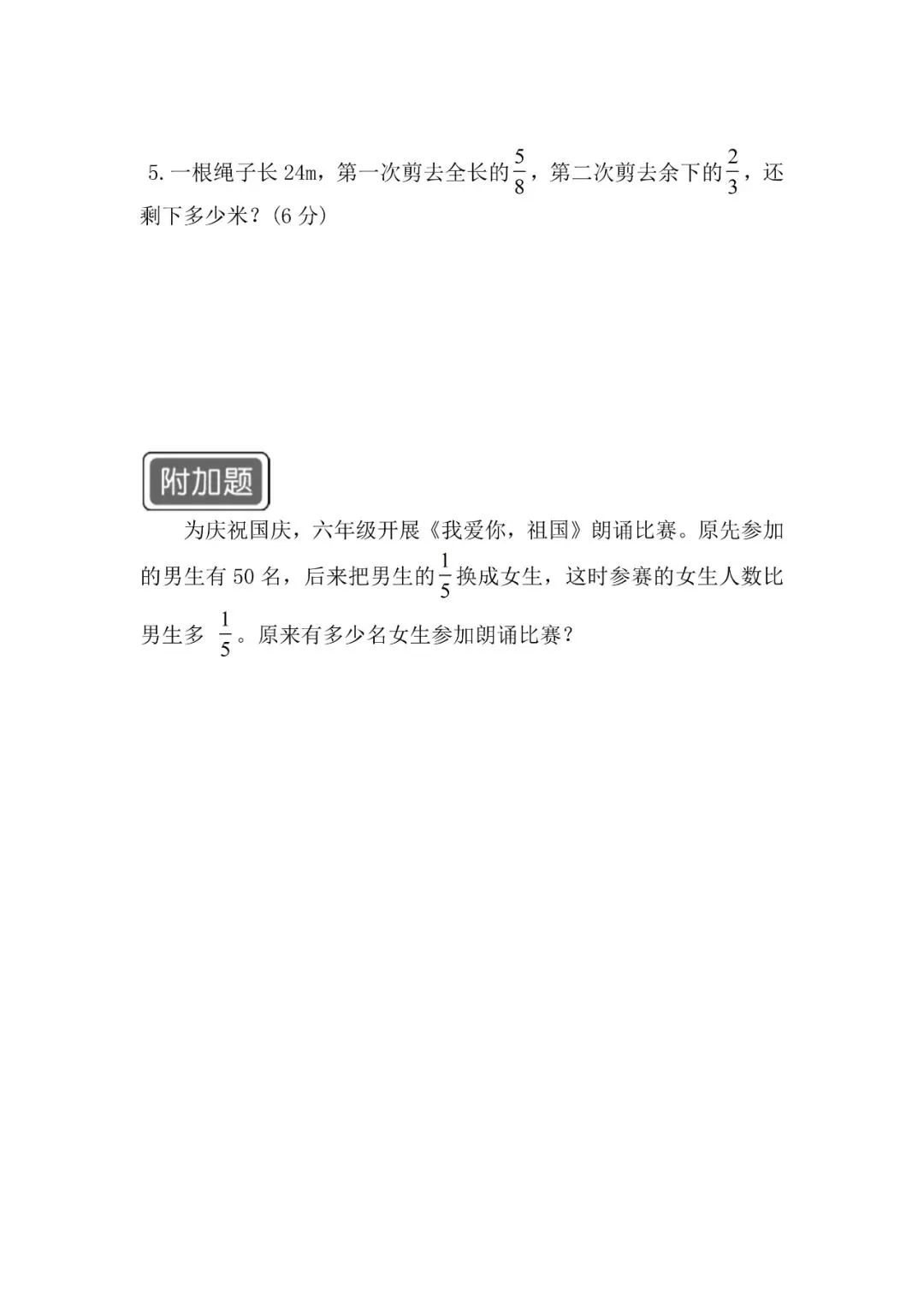 回复【单元试卷】领取人教版数学六年级上册第一单元试卷