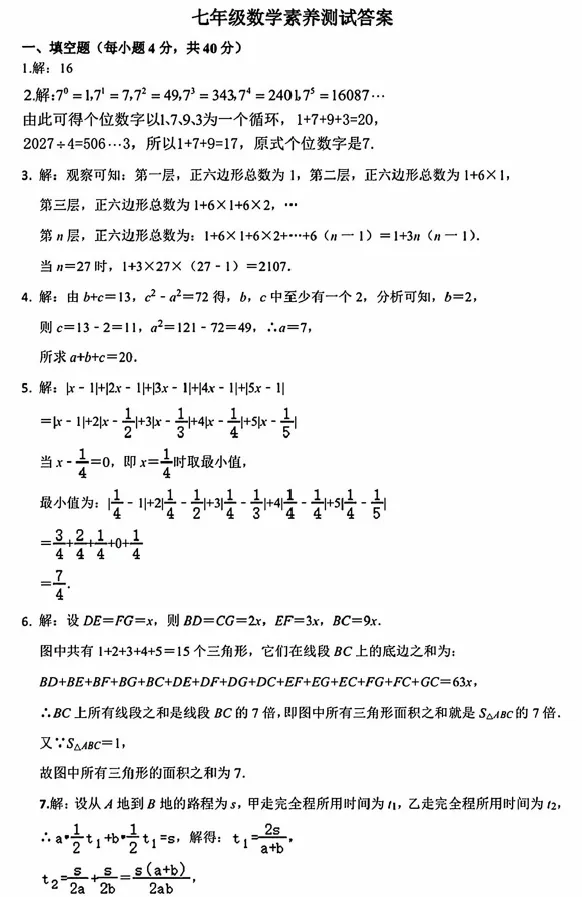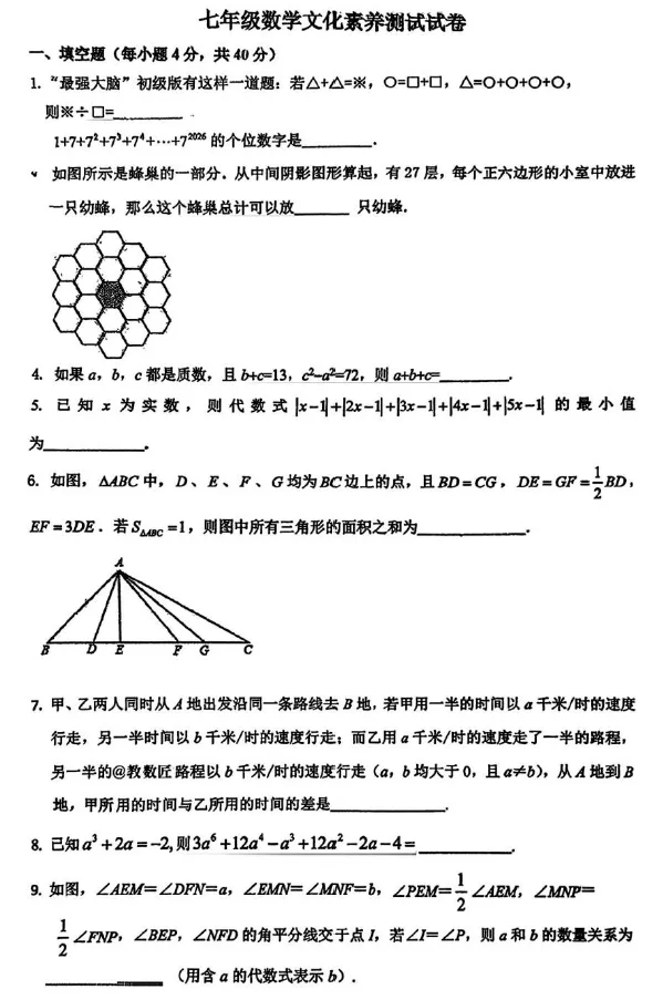 2026.3嘉兴市七年级素养测试数学试卷(含答案).pdf