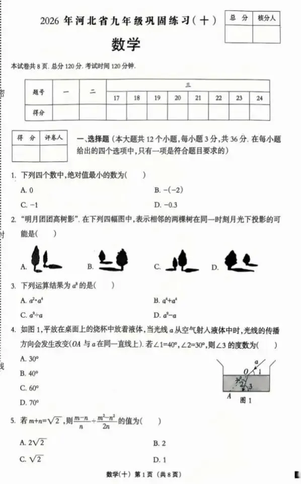 >【模拟试卷】2026河北省九年级巩固练习(十)『数学 』试卷!