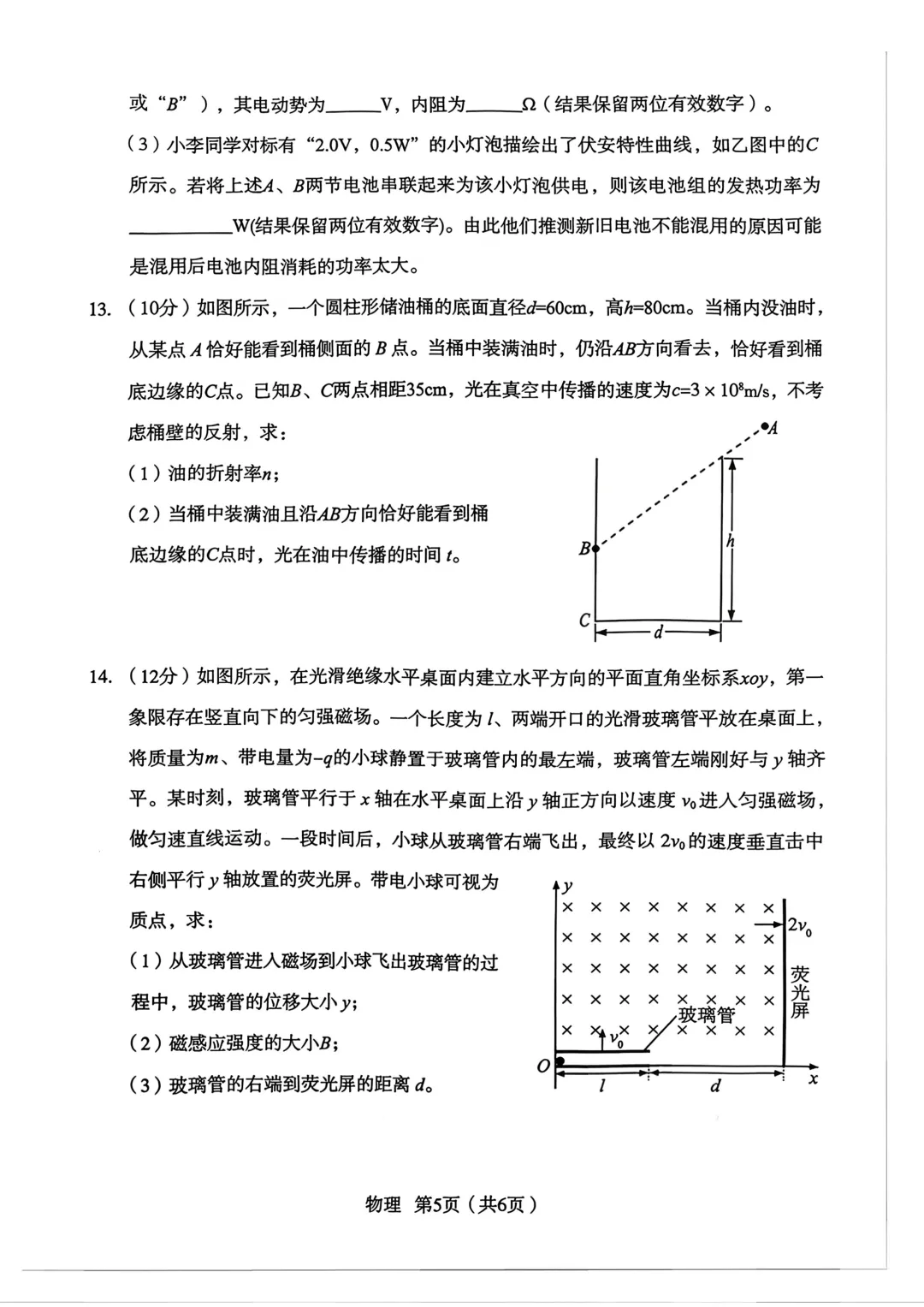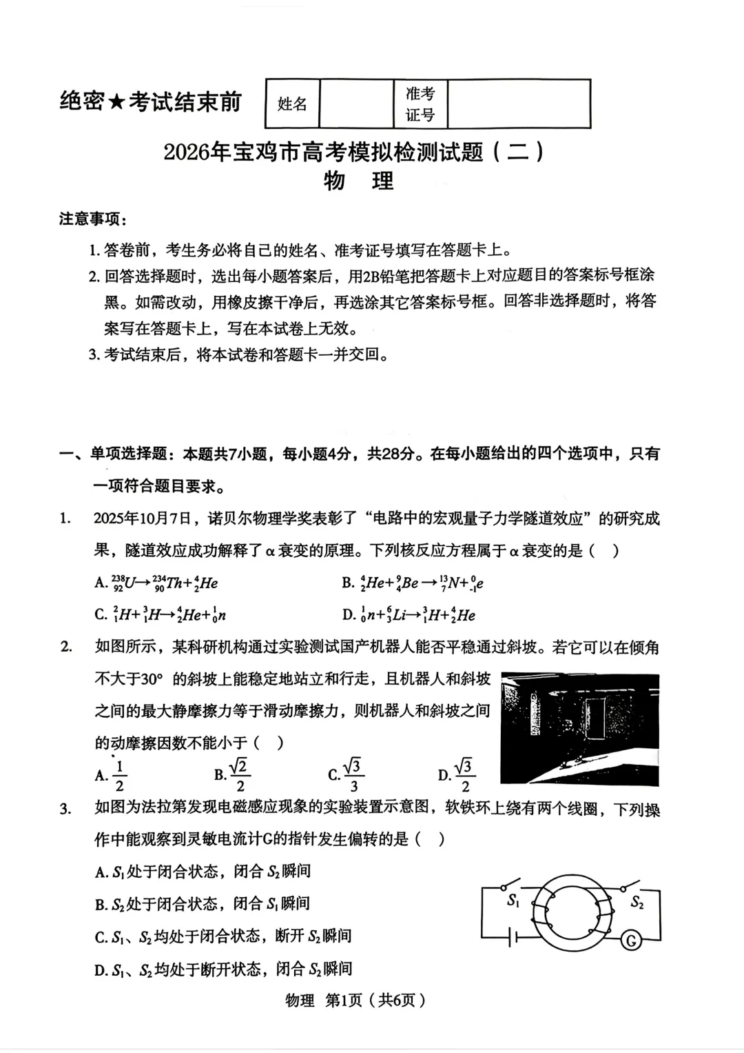 2026成都二诊物理试卷及答案,历史试卷及答案